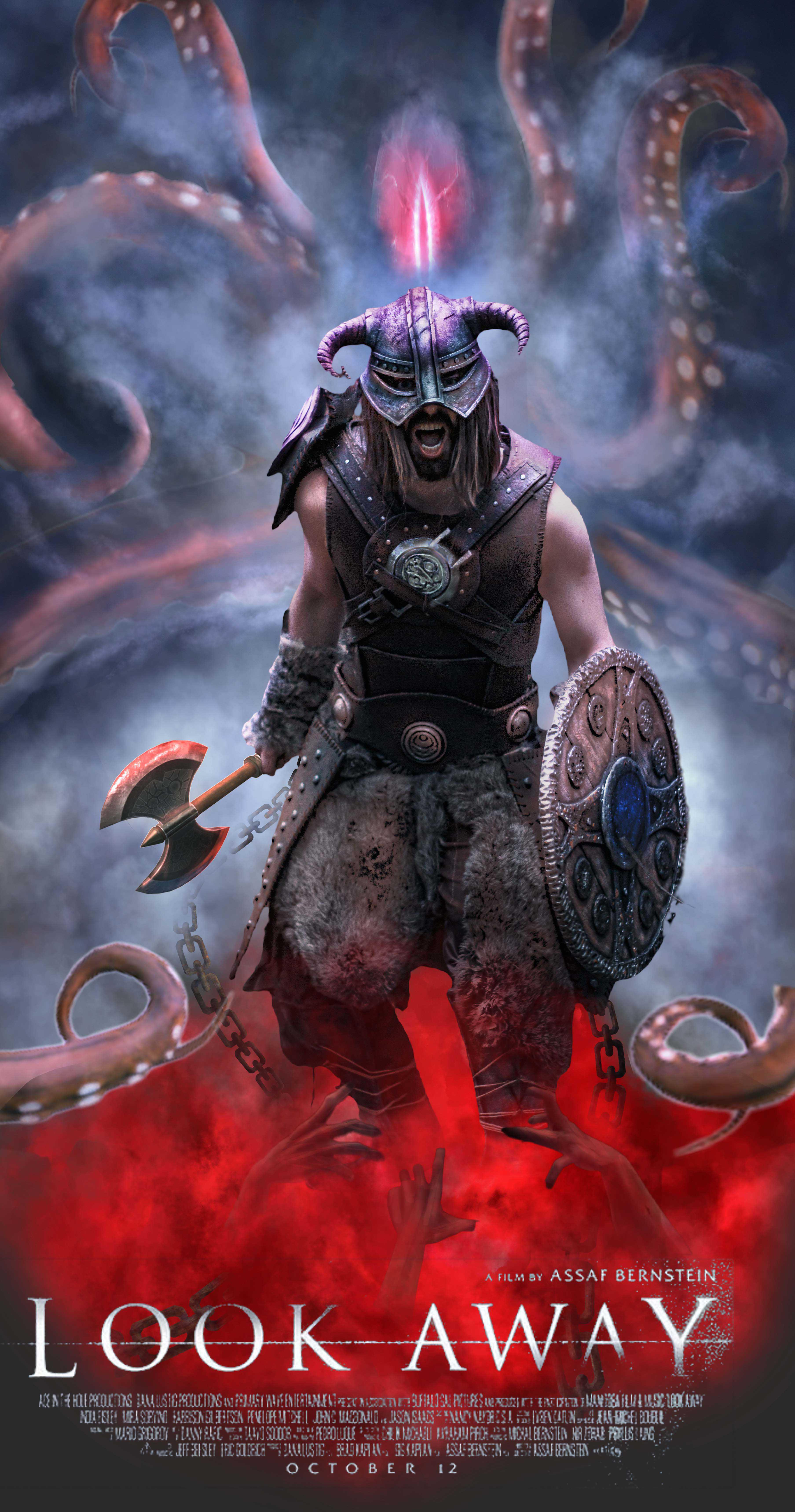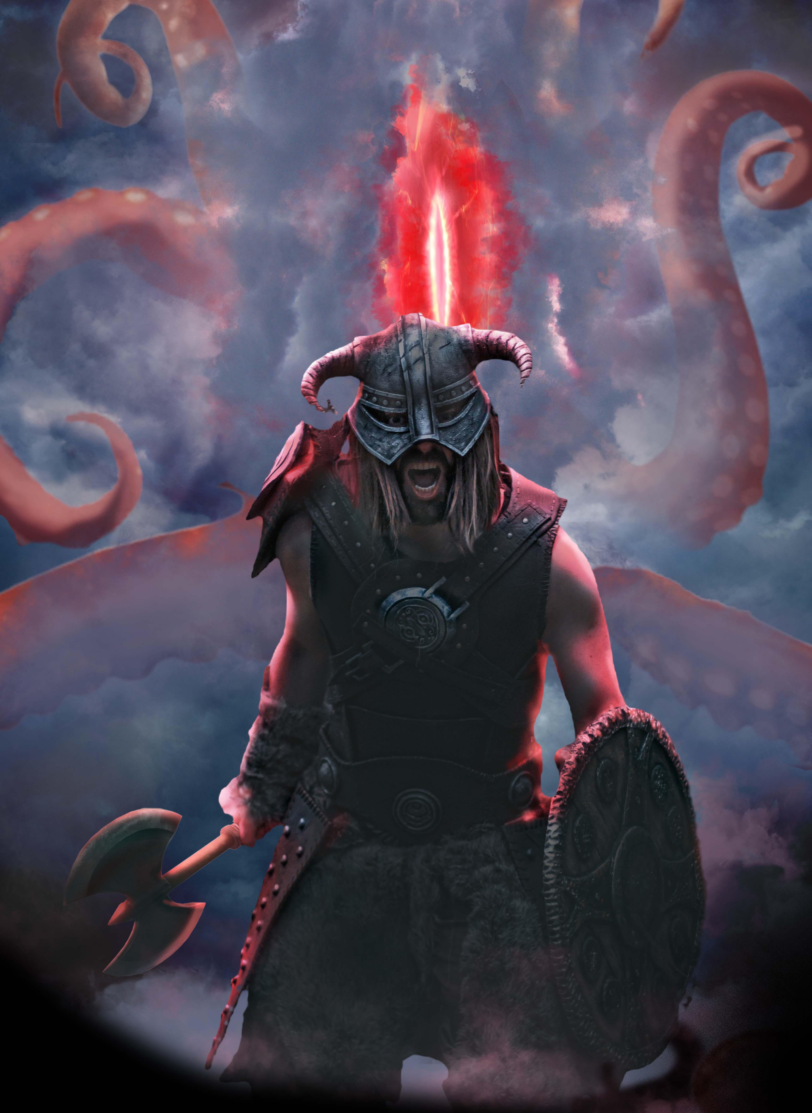这张图还是找了很多参考的,有鬼手,章鱼,锁链,雾的形态,如果有人感兴趣的话,也可以发出来,这张图是学玩光影魔方的课程做的,光影学得不太行,下方的文字是随便扒了一个海报的,主要是为了降低红色烟雾的重心,不然看起来太实了会不太舒服。