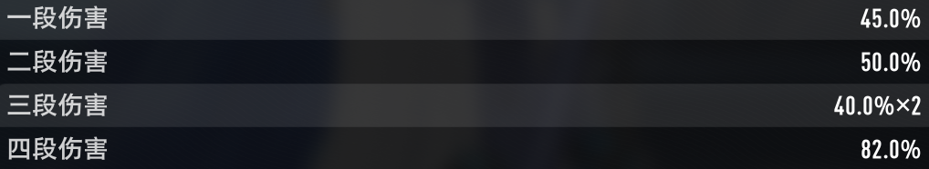 45%丨50%(击飞)丨40*2丨 82%(击飞,范围)