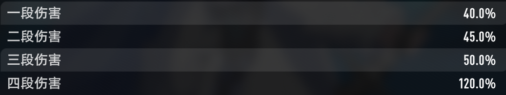 连击对近战武器蓄力伤害的提升:C+100%,B+200%,A+400%,S+700%
