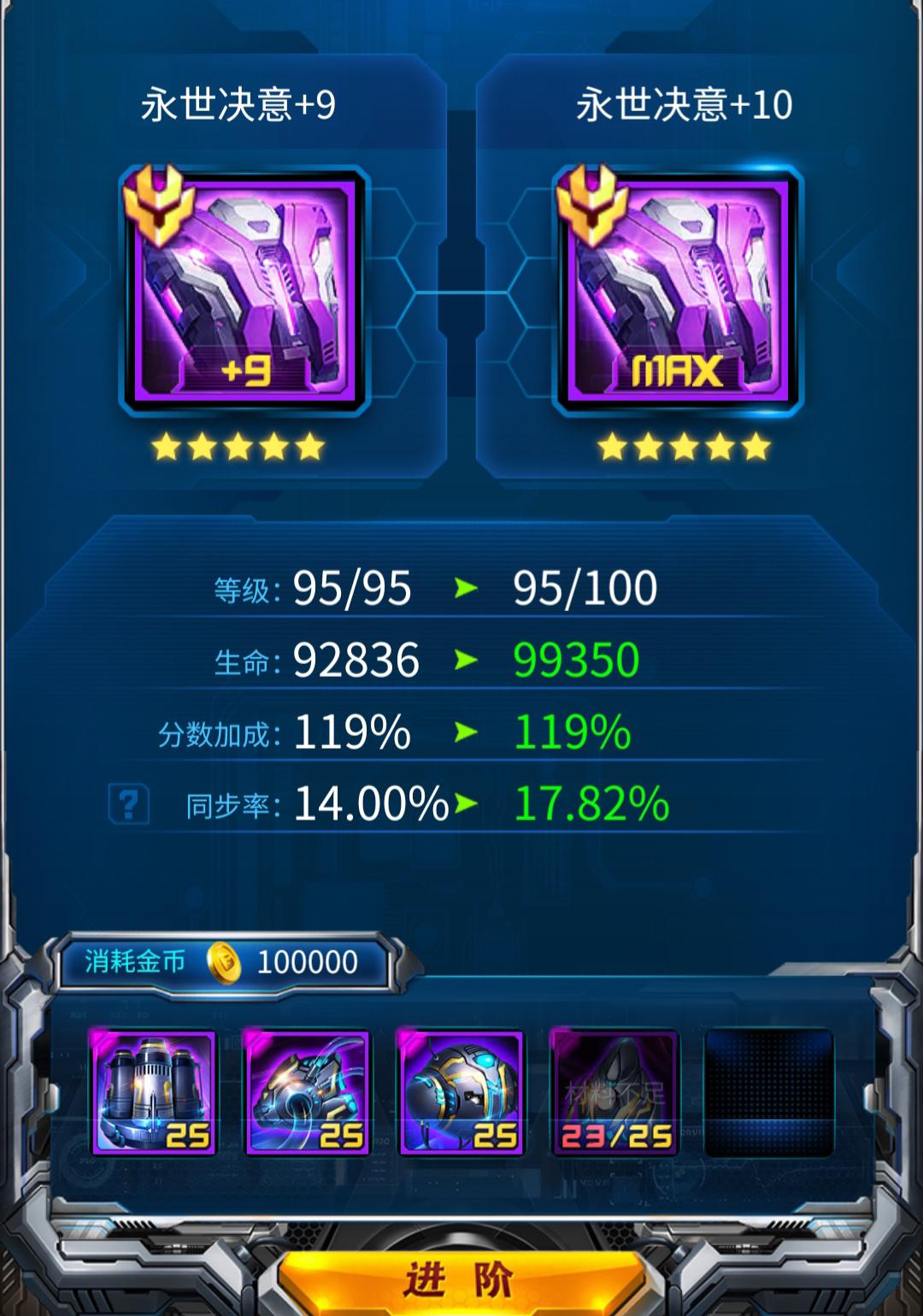 兴冲冲上线,扫荡完关卡,点击进阶界面