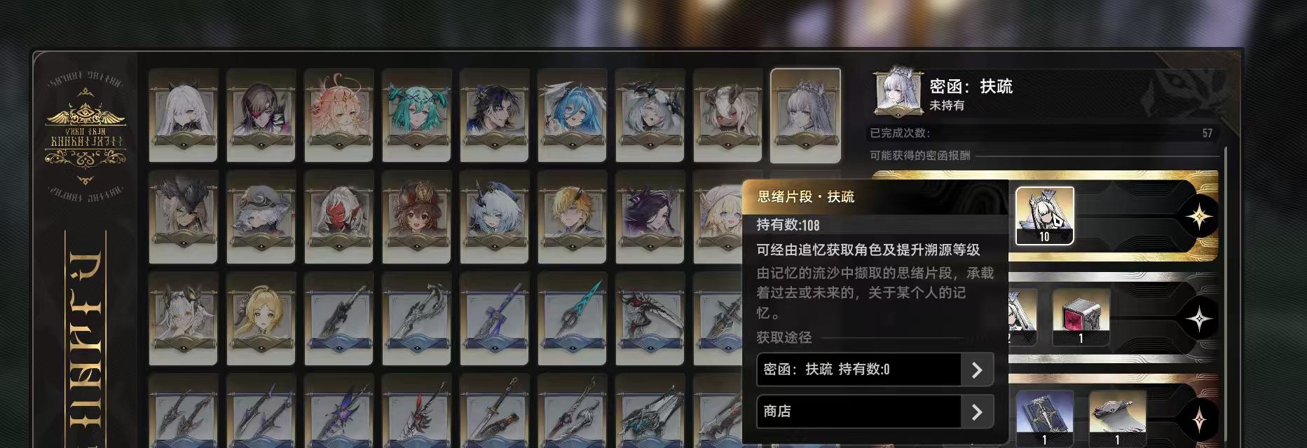 也是运气好起来了,赛琪摆烂没练,就打了3-10,57密函出了108碎片