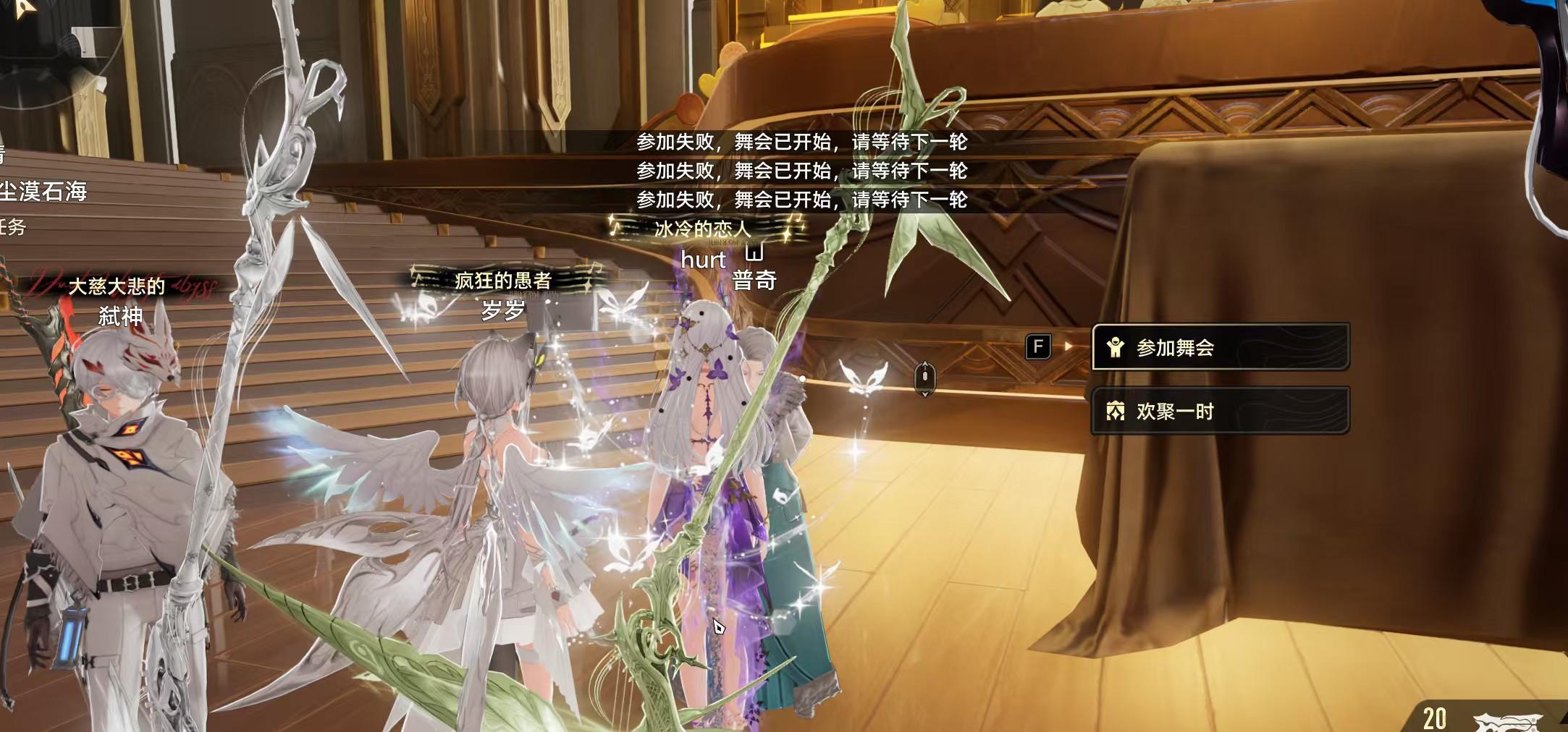 刚才打了一把 结果小游戏任务没完成 问客服让我再打一把 离舞会开始还有15分钟的我报的名 结果告诉我参加失败 我第一把距离开始只有10分钟都可以报名 啥意思啊 刚出的活动就有bug吗