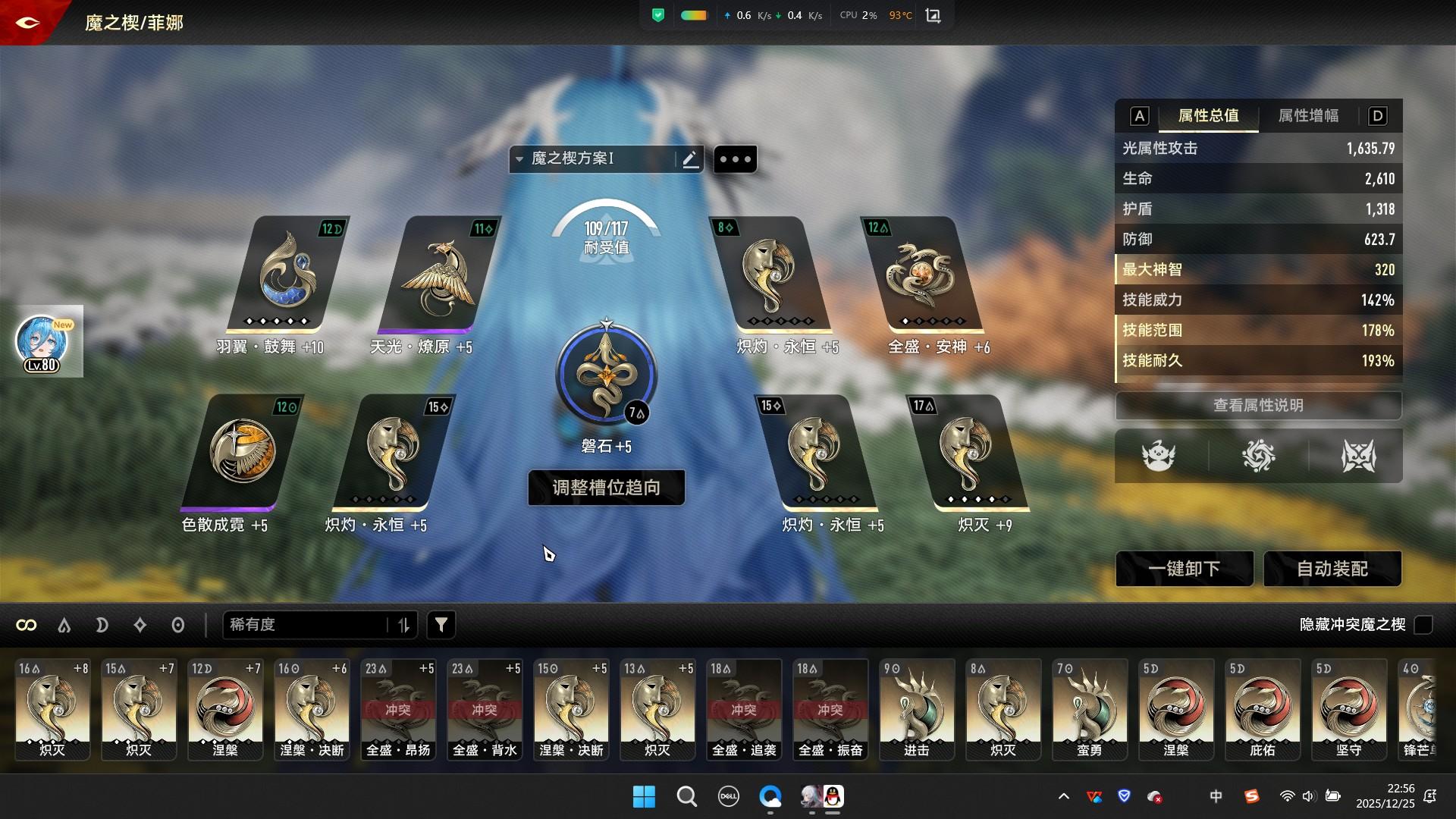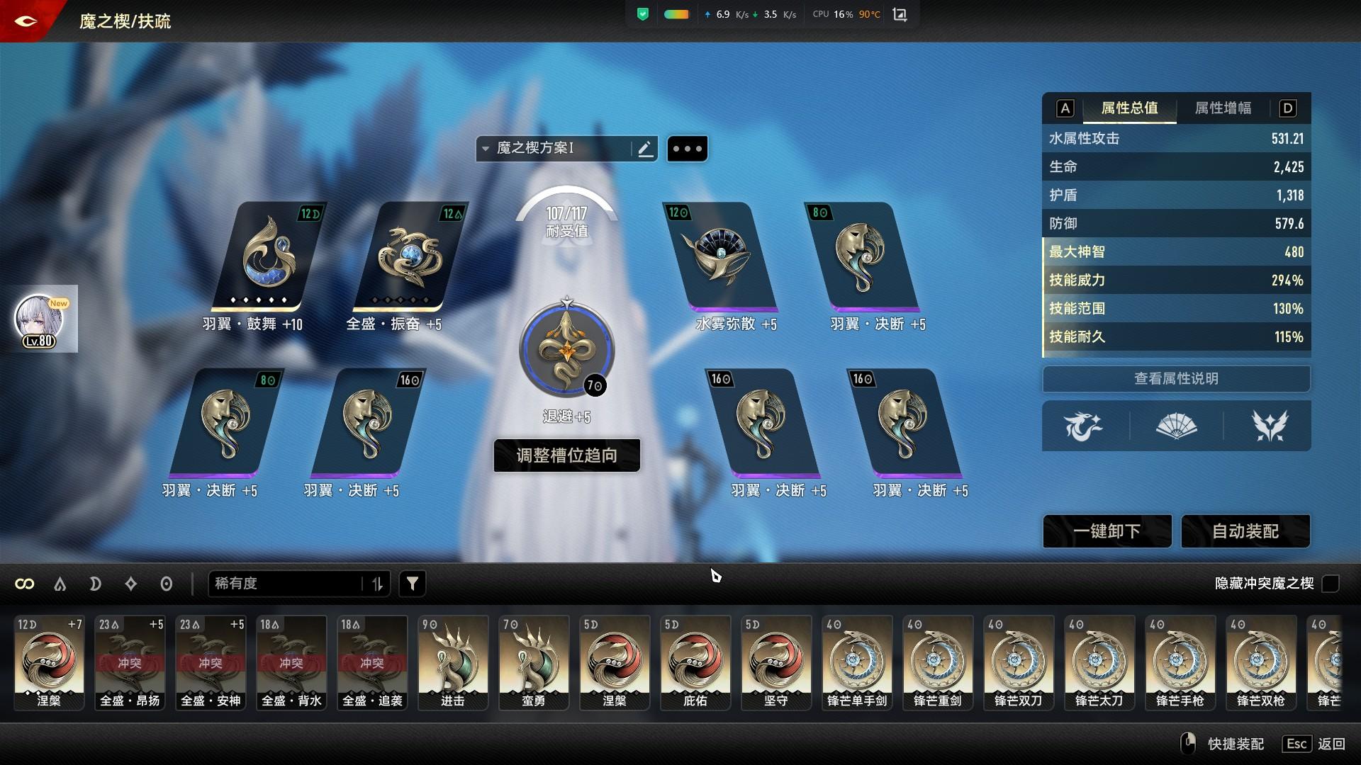 由于扶疏回蓝不受范围影响,可以考虑全强度吃满技能增伤BUFF,羽翼.鼓舞可换成断绝。有扶疏是不缺续航的,可以卡血线延长吃到背水效果的时间,短时间内打出较高伤害,但还是要合理运营血条和蓝条