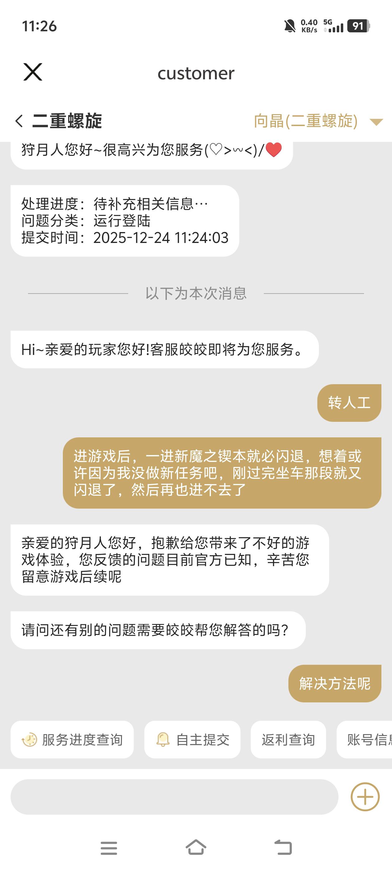转人工说“您反馈的问题目前官方已知,辛苦您留意游戏后续呢”,但三天半了那么多更新,我还是上不了号。
