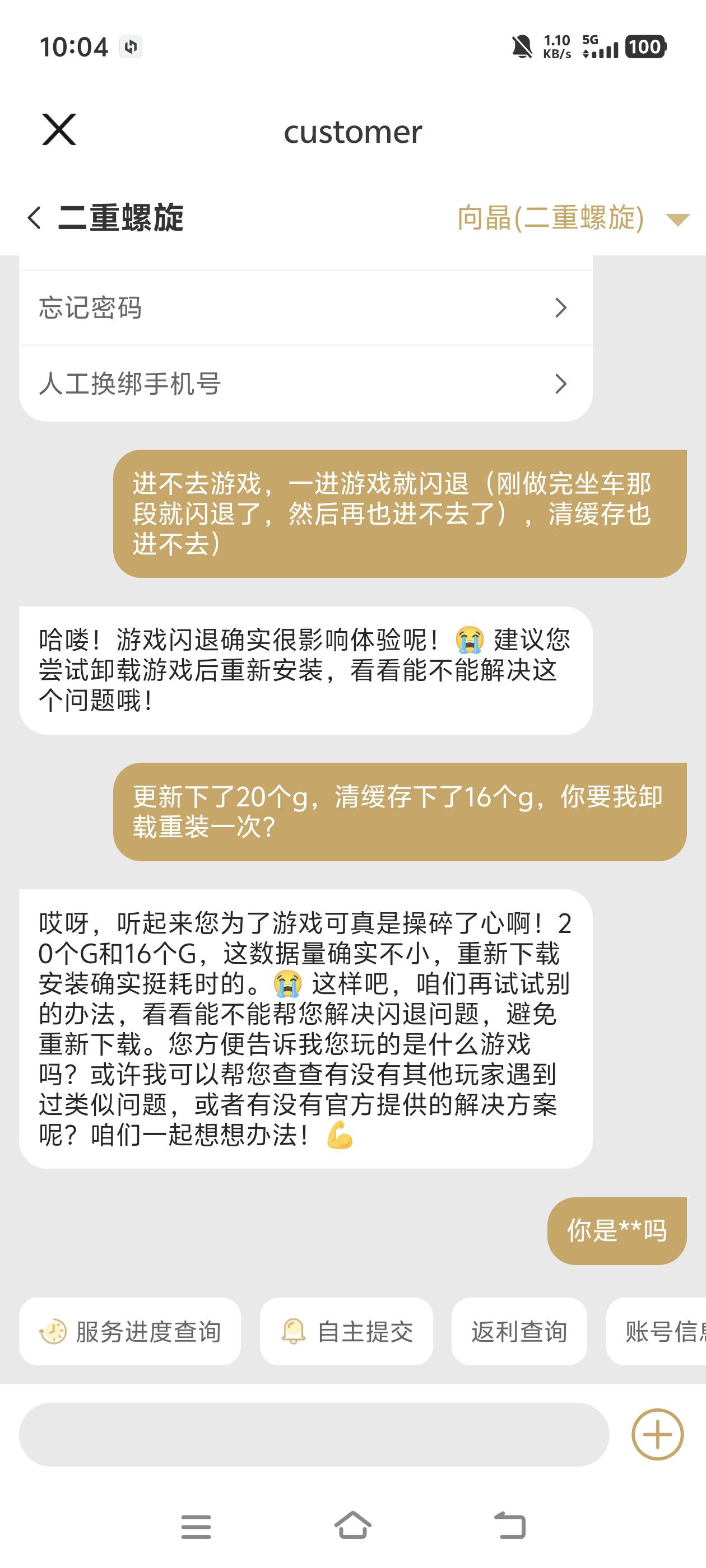 去jjj找ai客服不行,说让重下,说“您方便告诉我您玩的什么游戏吗”。