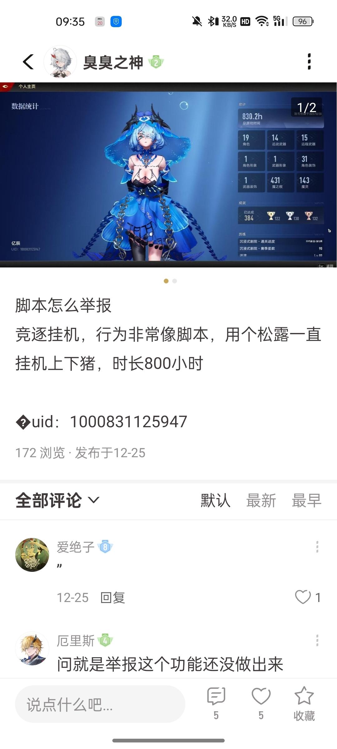 我跟官方举报过一个63级的也是竞逐挂机脚本,说是严查。这人隐藏了自己个人信息。
