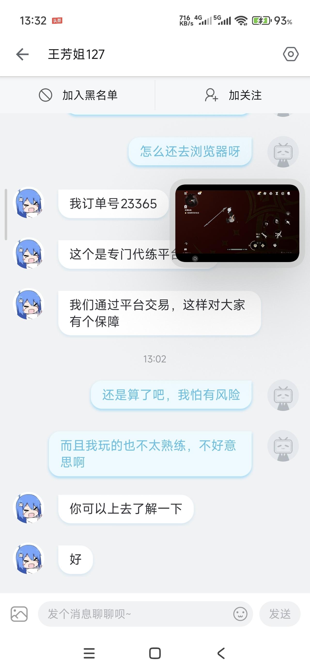 只能说别贪,一开始也有人找我代肝60级,心动价比市面价高,但是非要我用小黑盒联系他我网上一搜小黑盒骗局,直接拉黑删除走你~