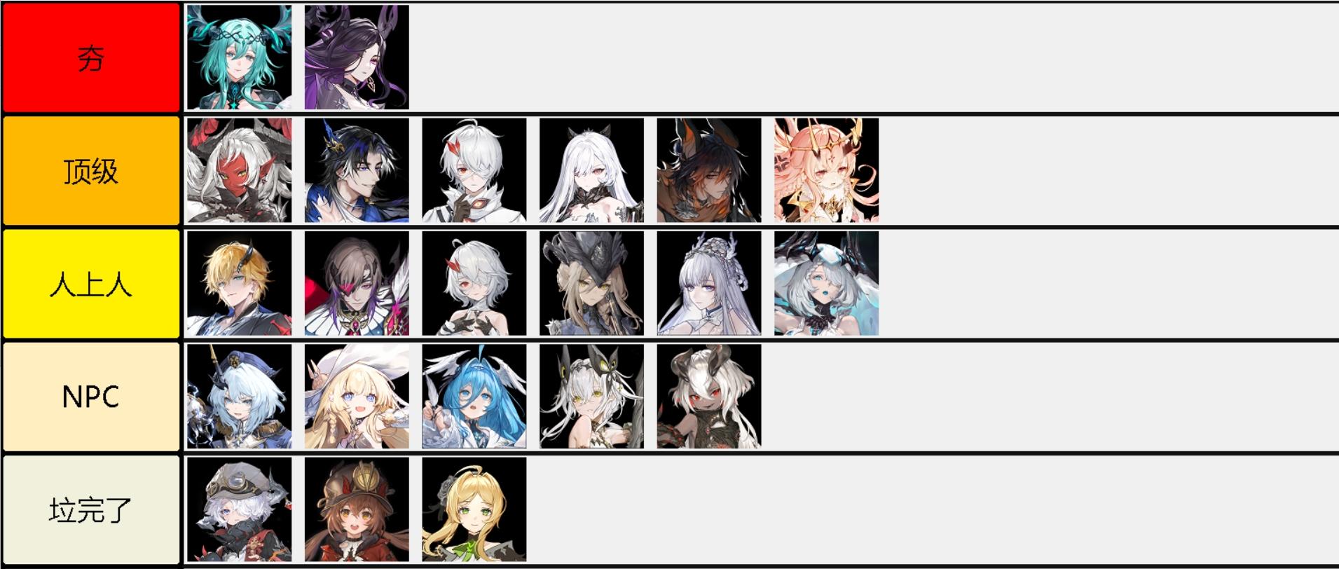 仅根据剧情和角色背景故事排序,与游戏内强度无关