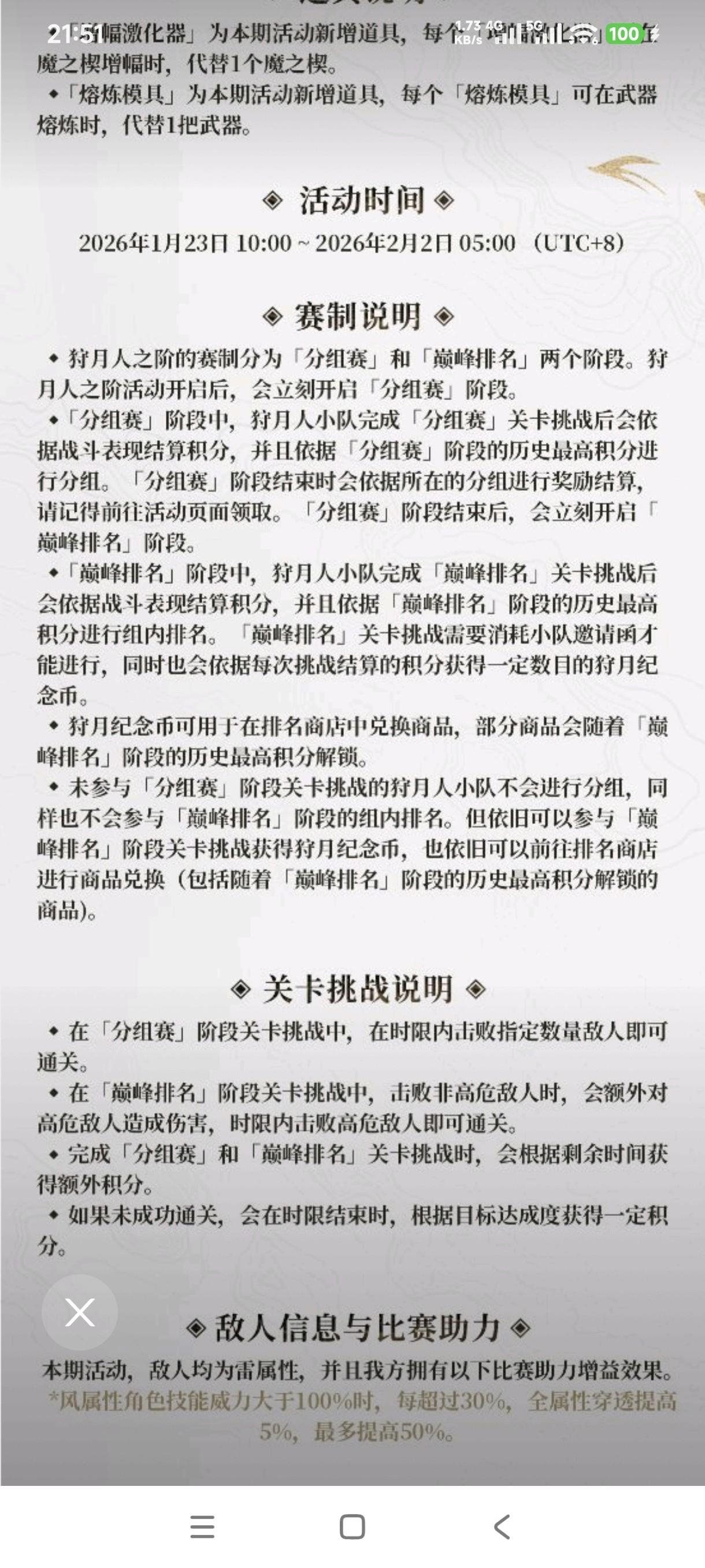 首先,狩月人之阶在1月23日开放,环境为风,轻度玩家我觉得首先把历练等级升到60,然后周本allin赛琪。作为策划亲女儿,又是深渊定制又是风属性魔之楔,重要性可见一斑。那么赛琪的魔之楔从紫加5到金加10,我们刷取的优先级又是怎样的呢?首先我们应该先明确自己的定位,如果就是没有时间重复刷取大量的紫mod去升级到一身金mod,紫加5和金加5其实是没有区别的(全盛系列除外)。那么有一定空闲时间进行刷取的,可以先刷一个+7的熏风,然后刷+7的决斗,此时金决断和金燎原作为副产物也有了。再带着刷一点中枢背水和中枢永恒,增加容量的同事也有燎原产出。最后就是版本新出的羽翼鼓舞决断,这个我建议放到收获日活动进行刷取,因为需求量大不说,副产物也很垃圾。