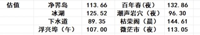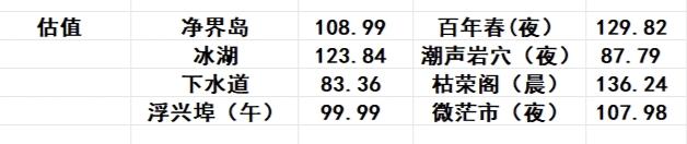 省流:枯荣阁≥百年春>冰湖>微茫市≥净界岛大于浮星埠>潮声岩穴>下水道