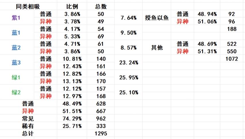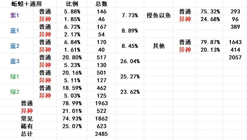 注4:普通饵、高级饵异种概率20%,异种饵异种概率50%