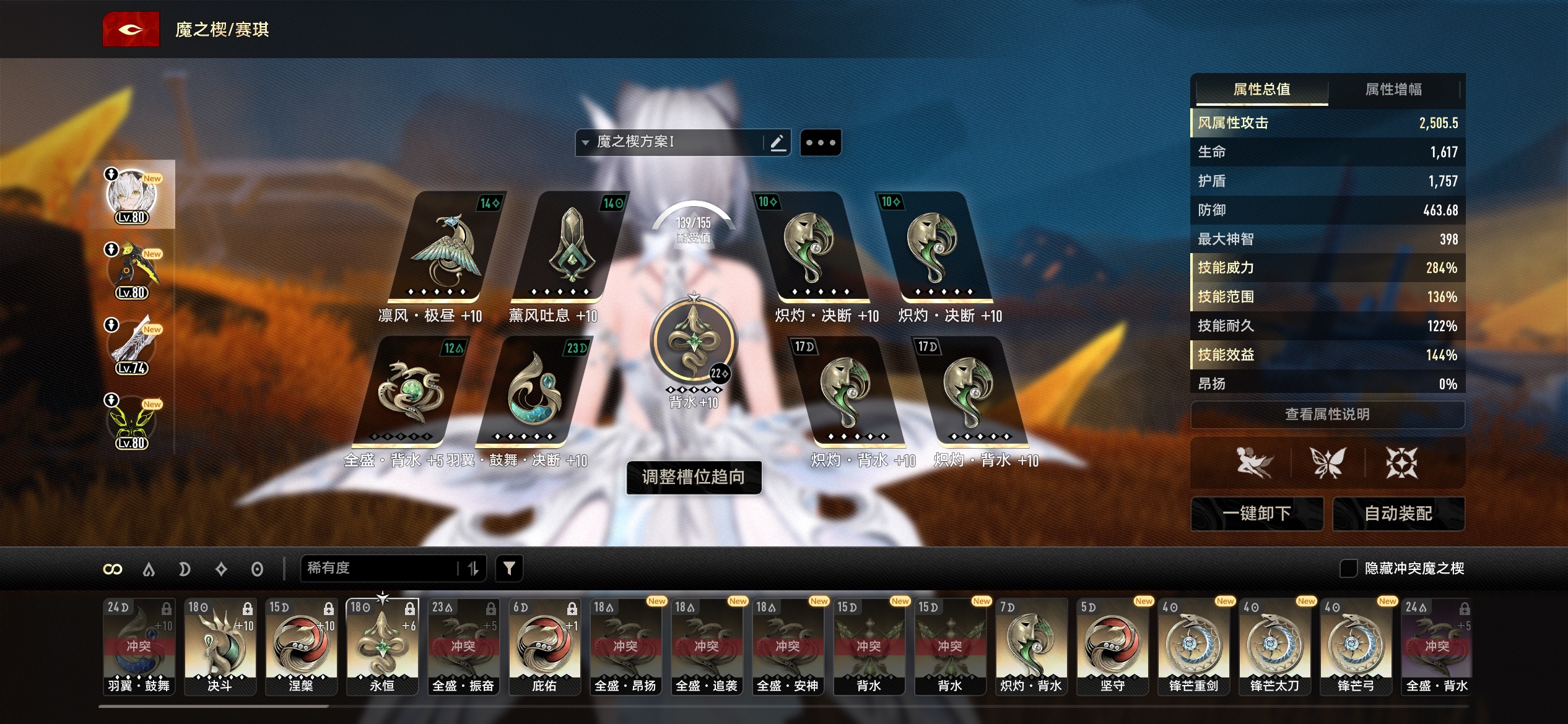 在这里分享一个全属性(2+2)夜航降肝秘籍:能比正常刷少刷很多次。以赛琪为例刷取850次风属性专属魔之楔,决断和背水的数量为102左右。建议各位刷42个紊乱气旋与42个熏风吐息,其他属性有双魔之楔的都按照此刷法,没有双的就先刷到+9,后续版本更新出来了再刷;狮鹫系列刷中枢背水和永恒,刷完后大约能出狮鹫系列40个左右,最后再去刷100级驱离本补足到50个。