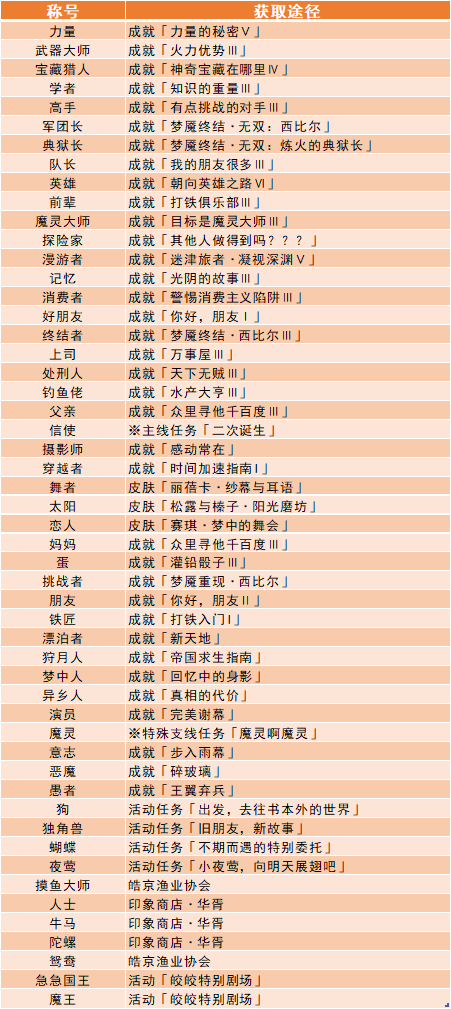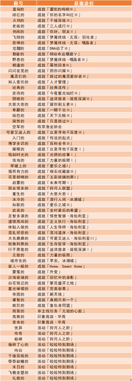 标注为「※」的,表示该称号在当前版本中可能存在无法正常获取的问题。