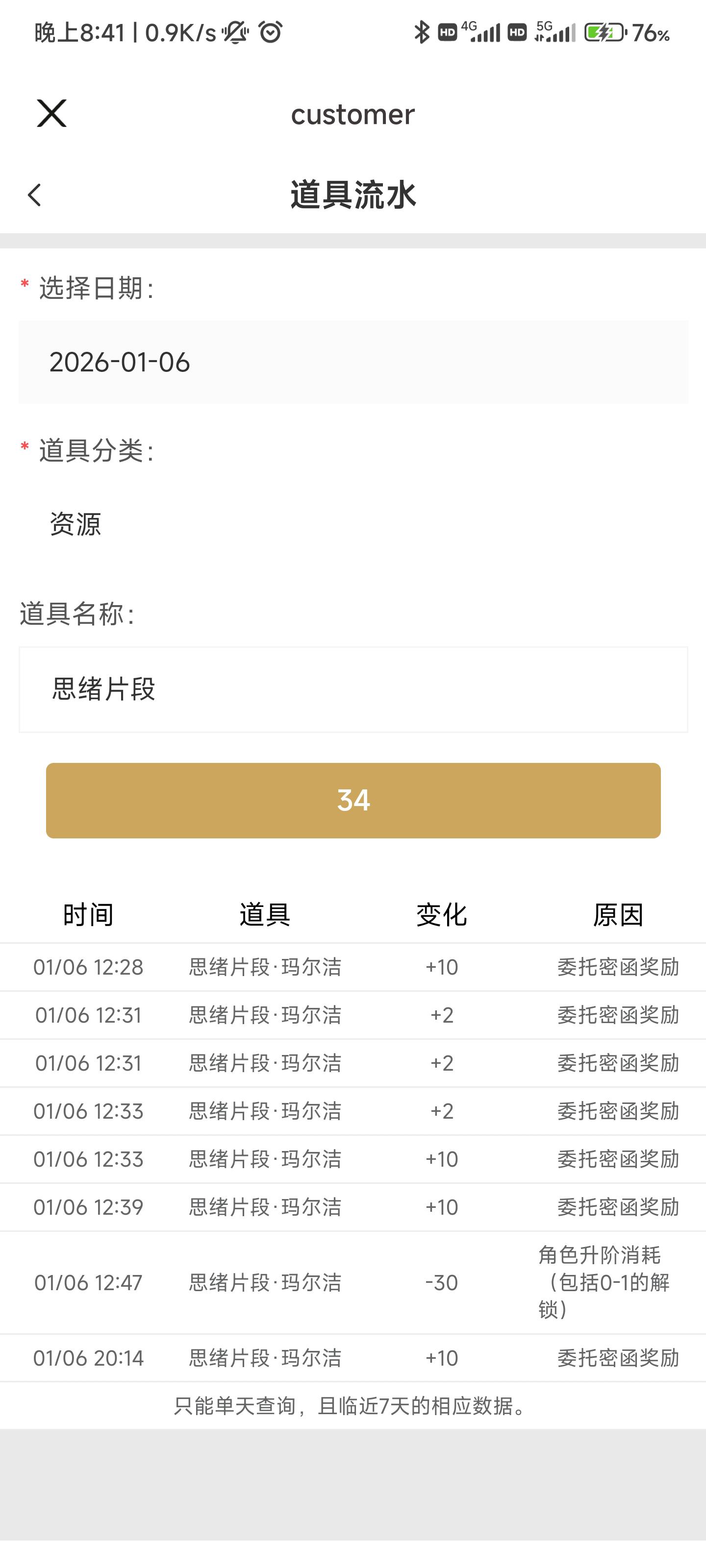 昨天以为玛尔洁碎片掉率存在问题,我在刷取玛尔洁碎片时,在主线送至1溯源的前提下,刷取42次密函线索,总共给了46碎片,除了4次保底出现的10碎片,剩余38次只给了6碎片(即只出现了3次2碎片),2碎片出现概率与游戏描述严重不符。今天换了一个角色刷还是除了保底10碎片,2碎片打死不出。然后我以为是带的某个魔之楔或者武器,魔灵有问题,然后把预设队伍全删了重新上角色,之后就恢复正常开始掉2碎片了,结果没开几把,又连续小十把不出2碎片,又变成只出保底10碎片了。有好兄弟遇到这种情况吗?