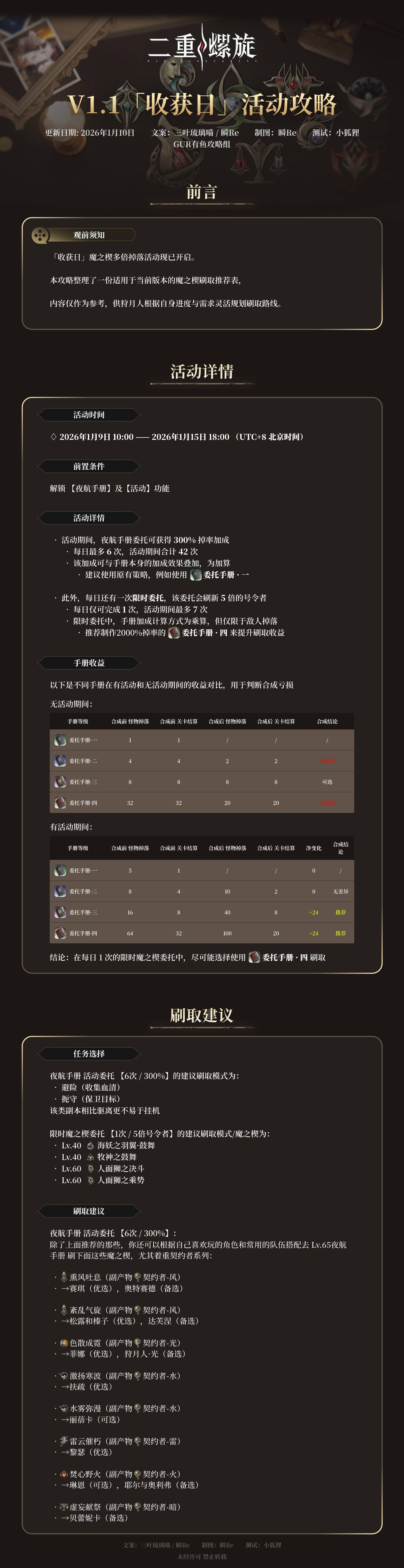 「收获日」活动即将开启,狩月人们记得稍微预留一些多倍券呐~