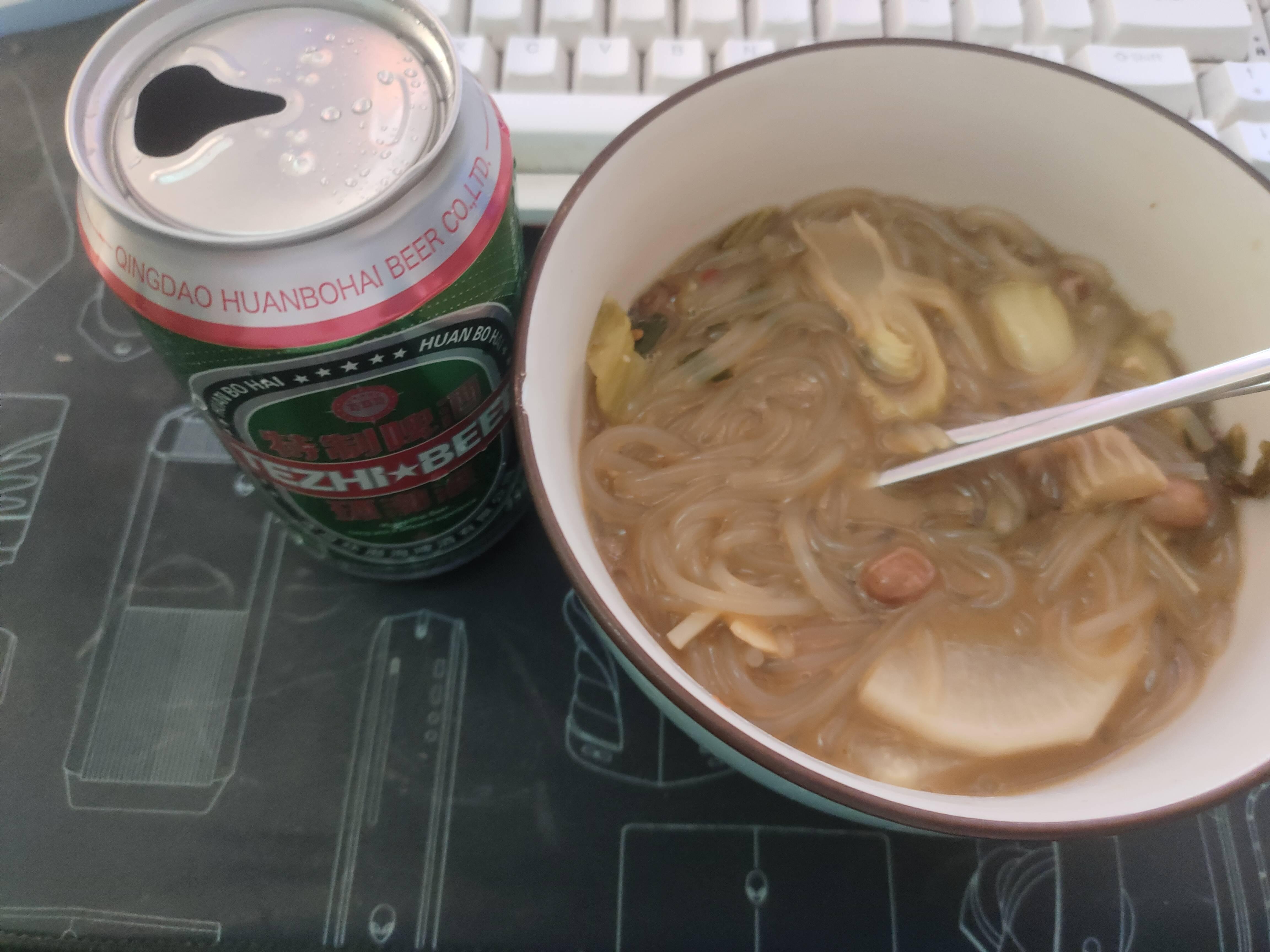 好夜宵就该有啤酒,花生和轻飘飘的酸辣粉啊
