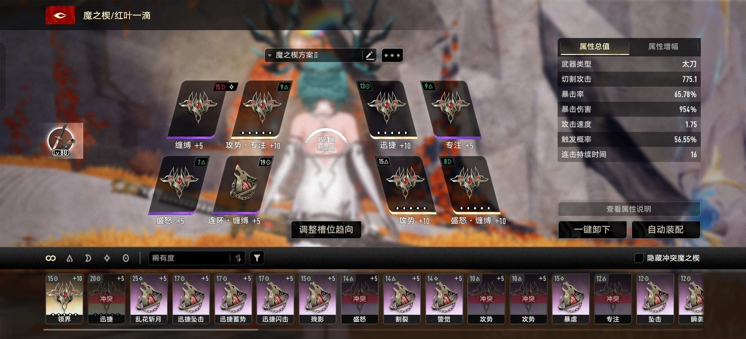 此流派只推荐高倍率架势卡(紫色特殊MOD)玩,目前应该只有红叶一滴加乱花斩月能玩,蒙恩礼御由于给的是大攻击,光属性MOD大家都知道的,大攻击太多了,容易稀释,所以不带。(如果过出新MOD了,大家可以尝试一下玩高级暴击流派,追忆的残影和鎏金岁月都不错)