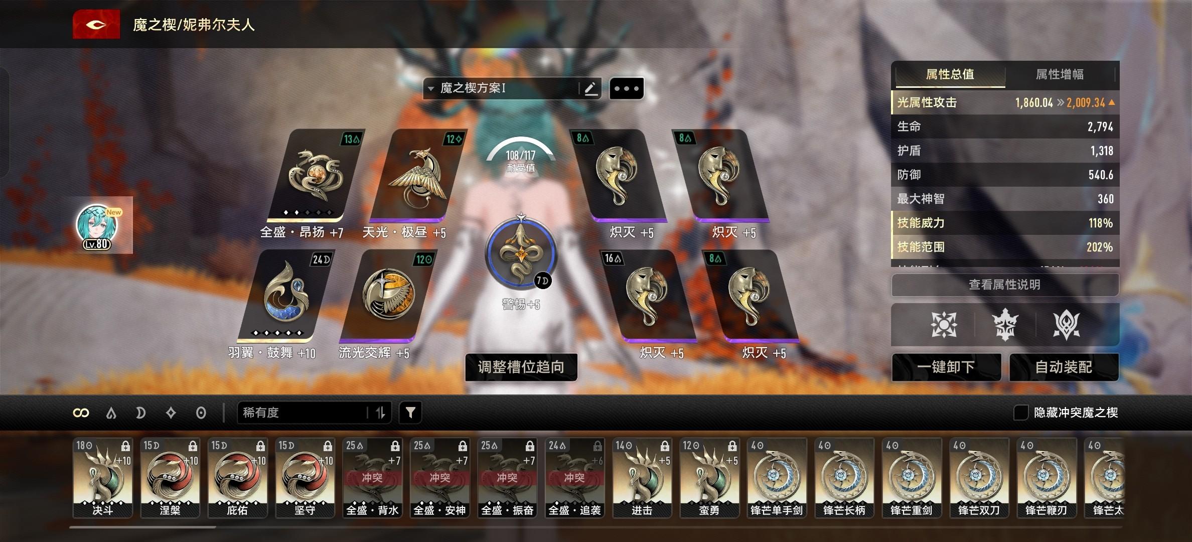 角色MOD的话推荐的话根据以上的图把,中枢换成光昂扬(没出),羽翼鼓舞换成光羽翼鼓舞追袭(没出),其他全部替换成金+10