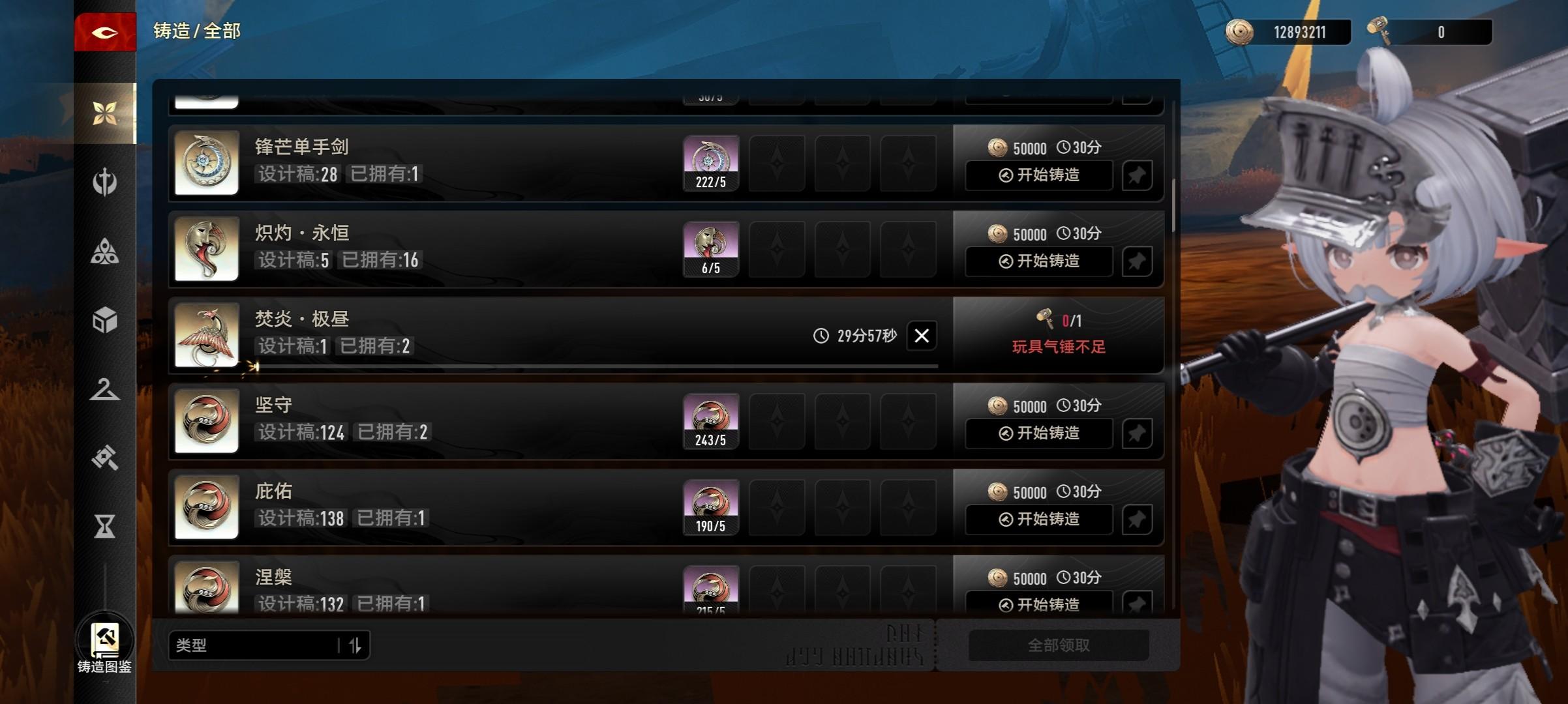 我武器,武器图纸,甚至连角色碎片都多做了十几片