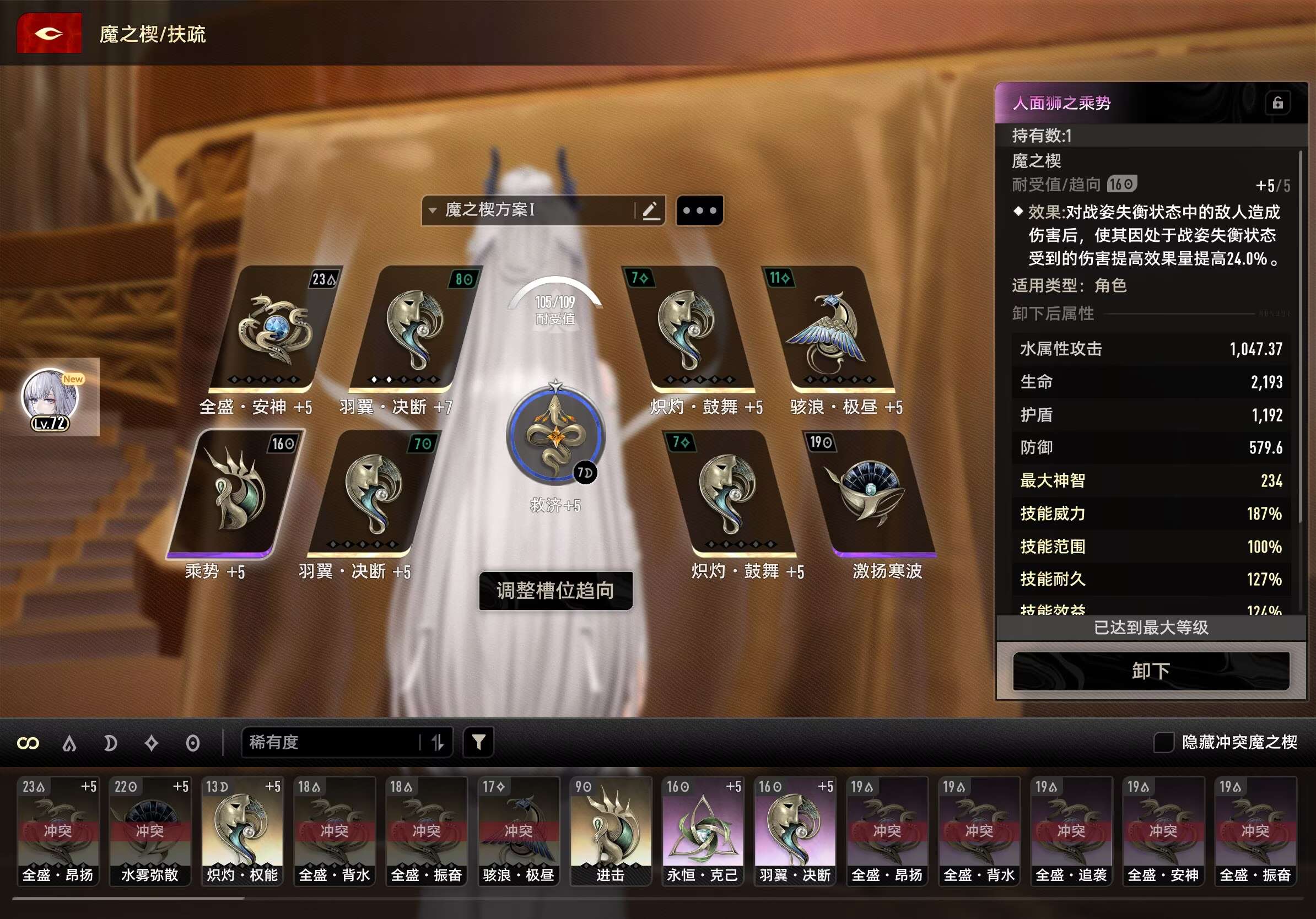 仅供参考。乘势在夜航60好像 金图纸 先打一个图纸看看需要什么材料 然后在刷。乘势可以给另外一个辅助带 因为扶疏这样配刚刚好全吃满buff 等满命满技能可以下一个决断