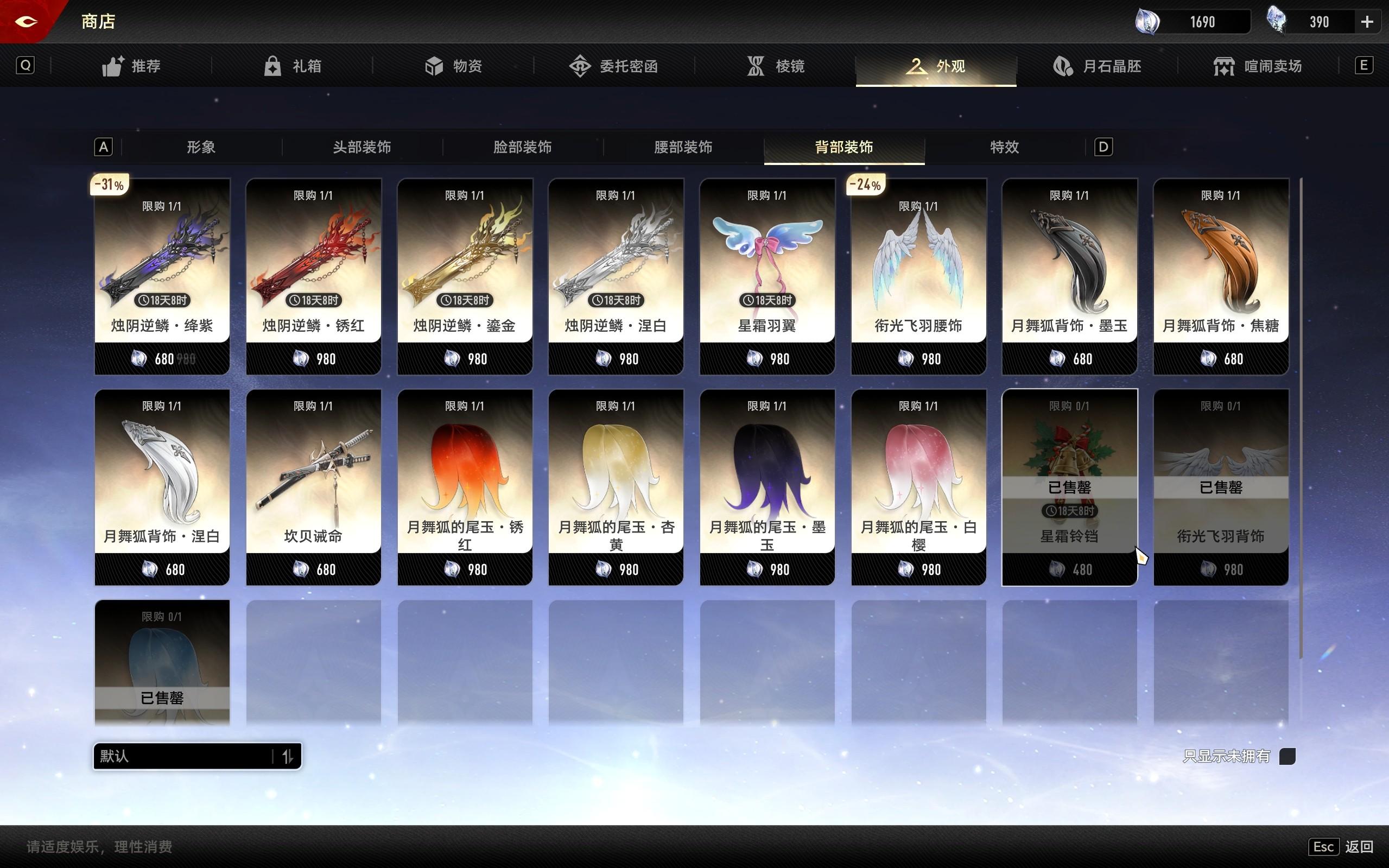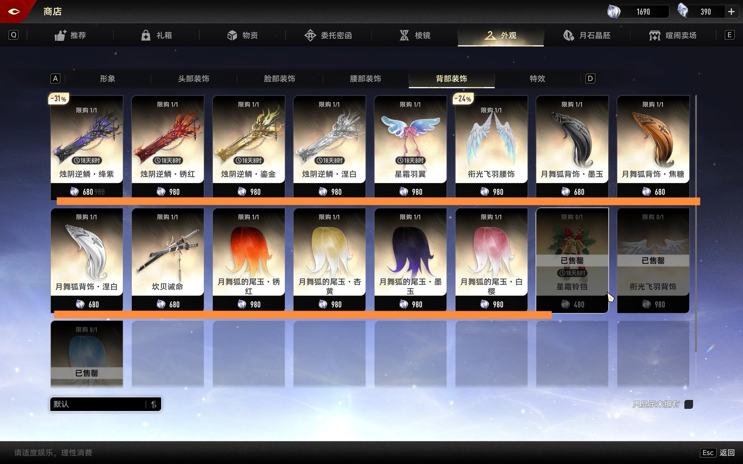 尽管这些背饰全角色通用,但我依旧是买了三种背饰。除去打折的6元圣诞装饰,