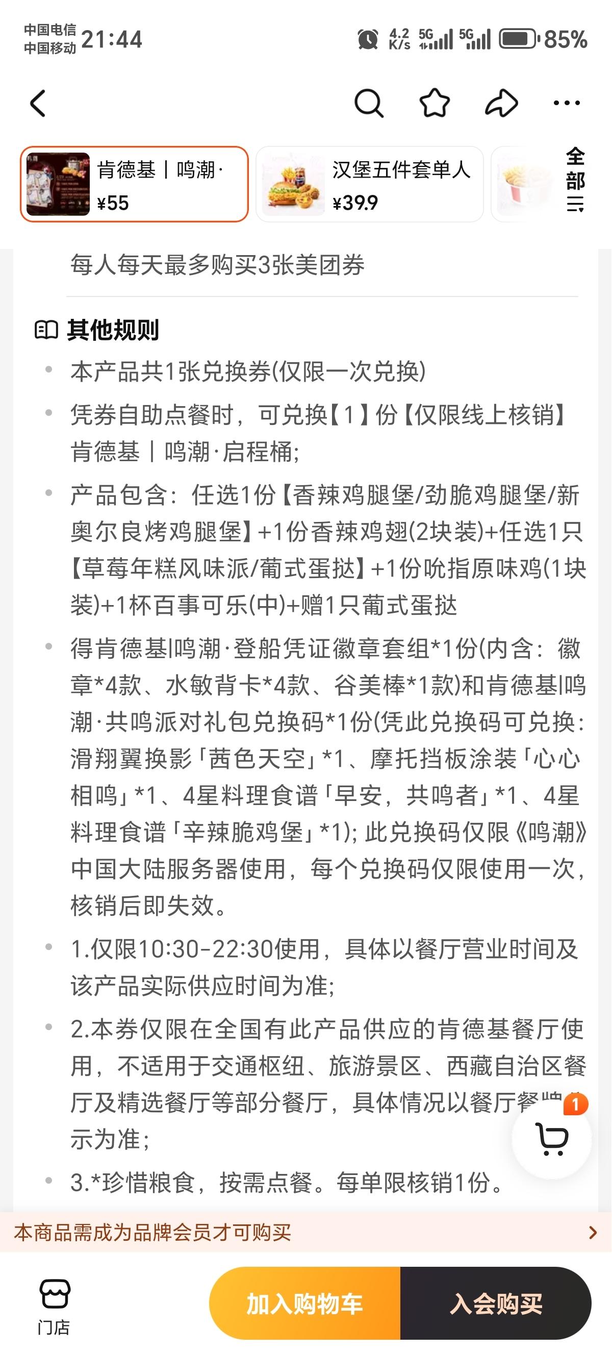 唉,喜欢玩的游戏是热门游戏的人真是好啊,五十几块钱吃肯德基,吃的和周边都不错。二重会有吗