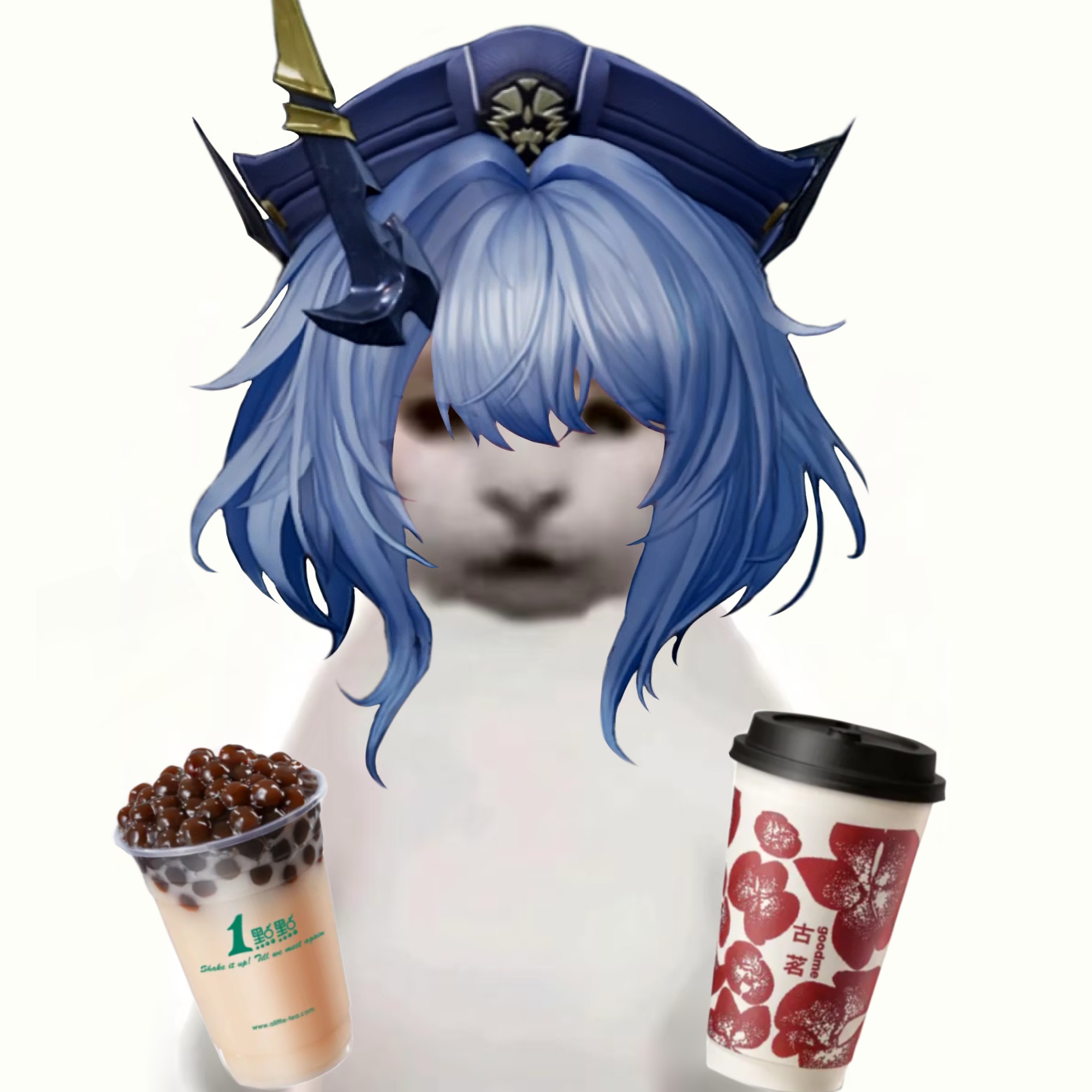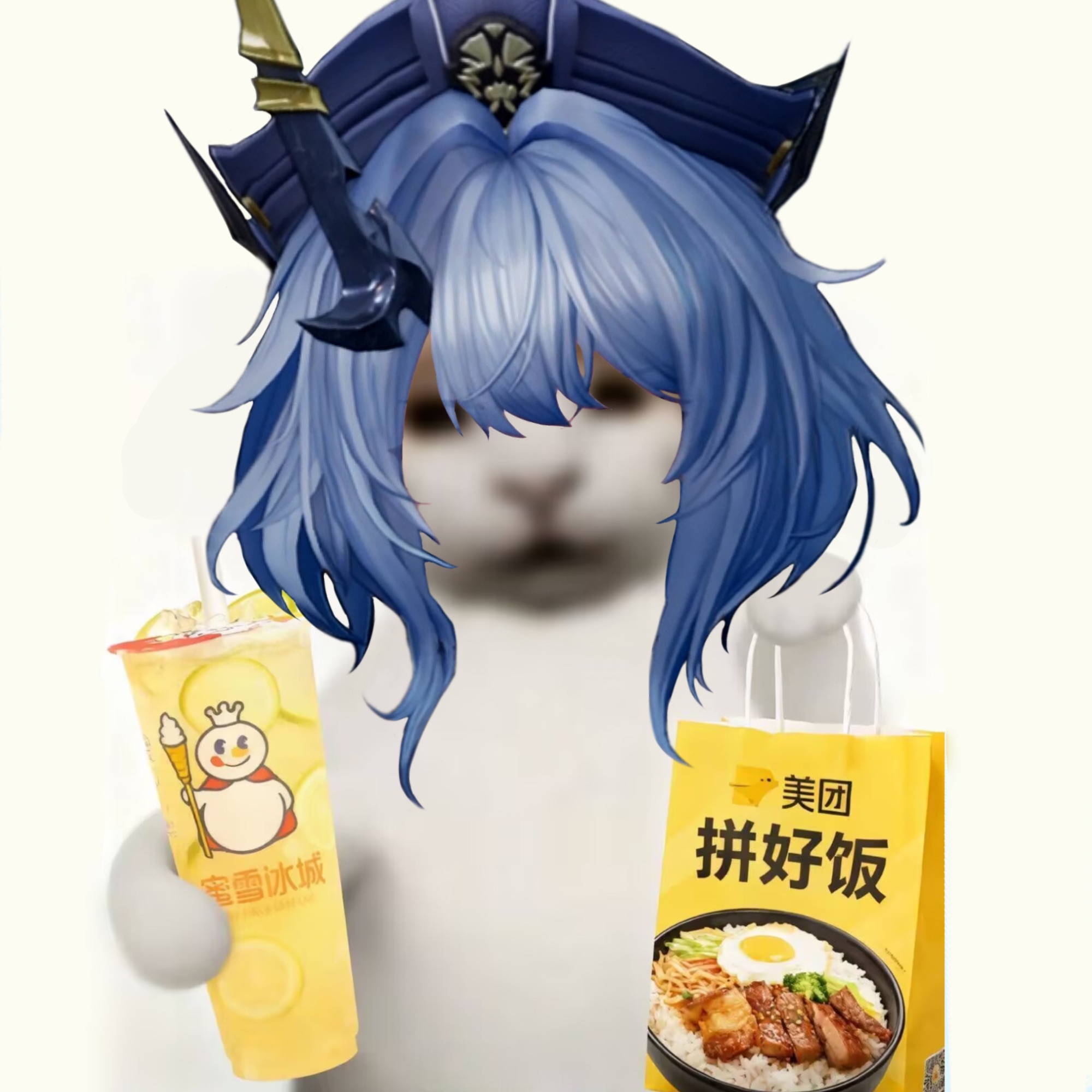 能不能P一个这个猫把珍珠奶茶倒进炸鱼薯条里的