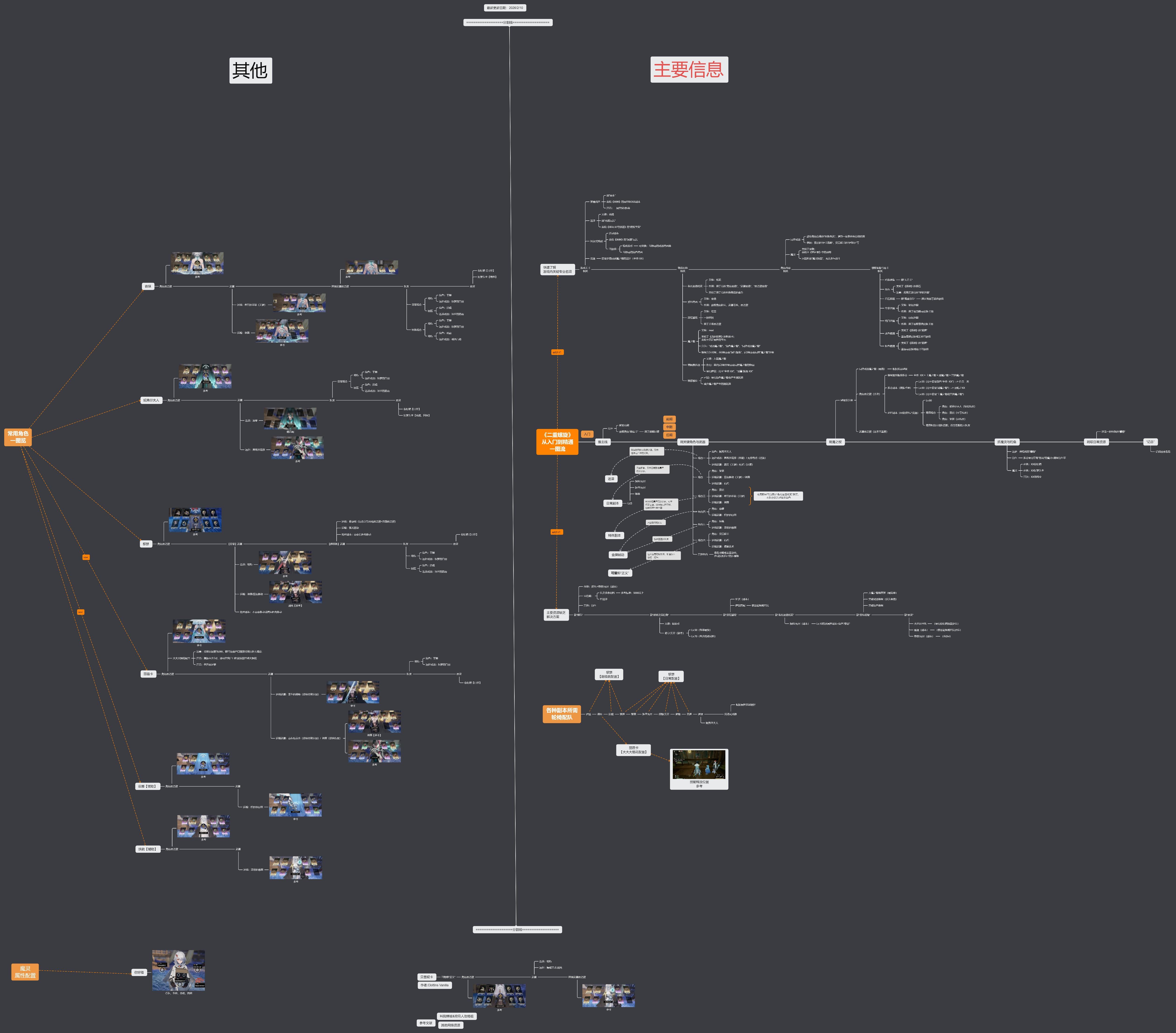 修改:板块【更新日志】、板块【各种副本所需轮椅配队】、板块【主要资源缺乏解决方案】、部分连接线颜色、部分主题颜色、部子主题颜色、核心名称、部分流程线内容。