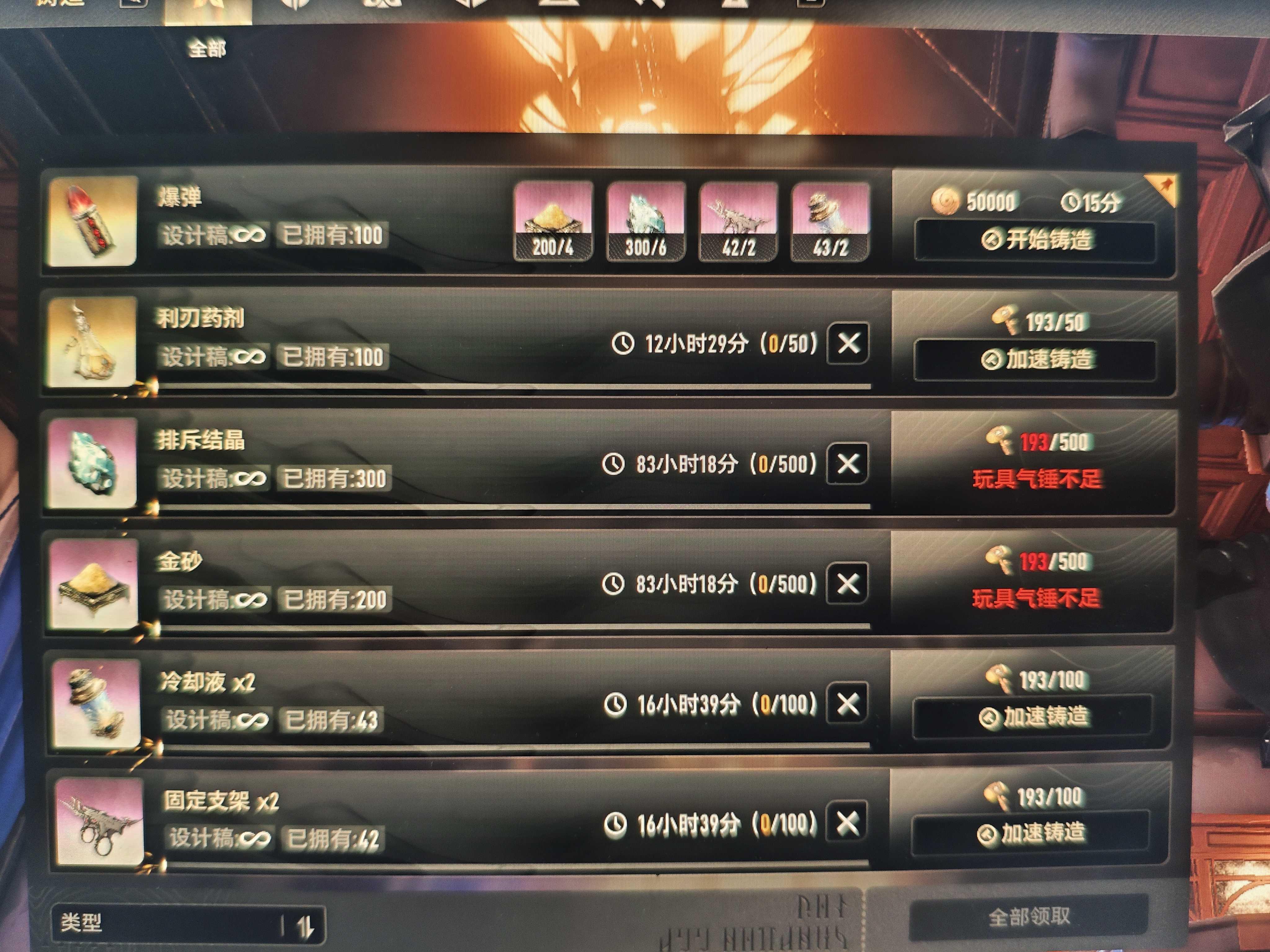忘了提前造冷却液和支架了又要多等一会儿了