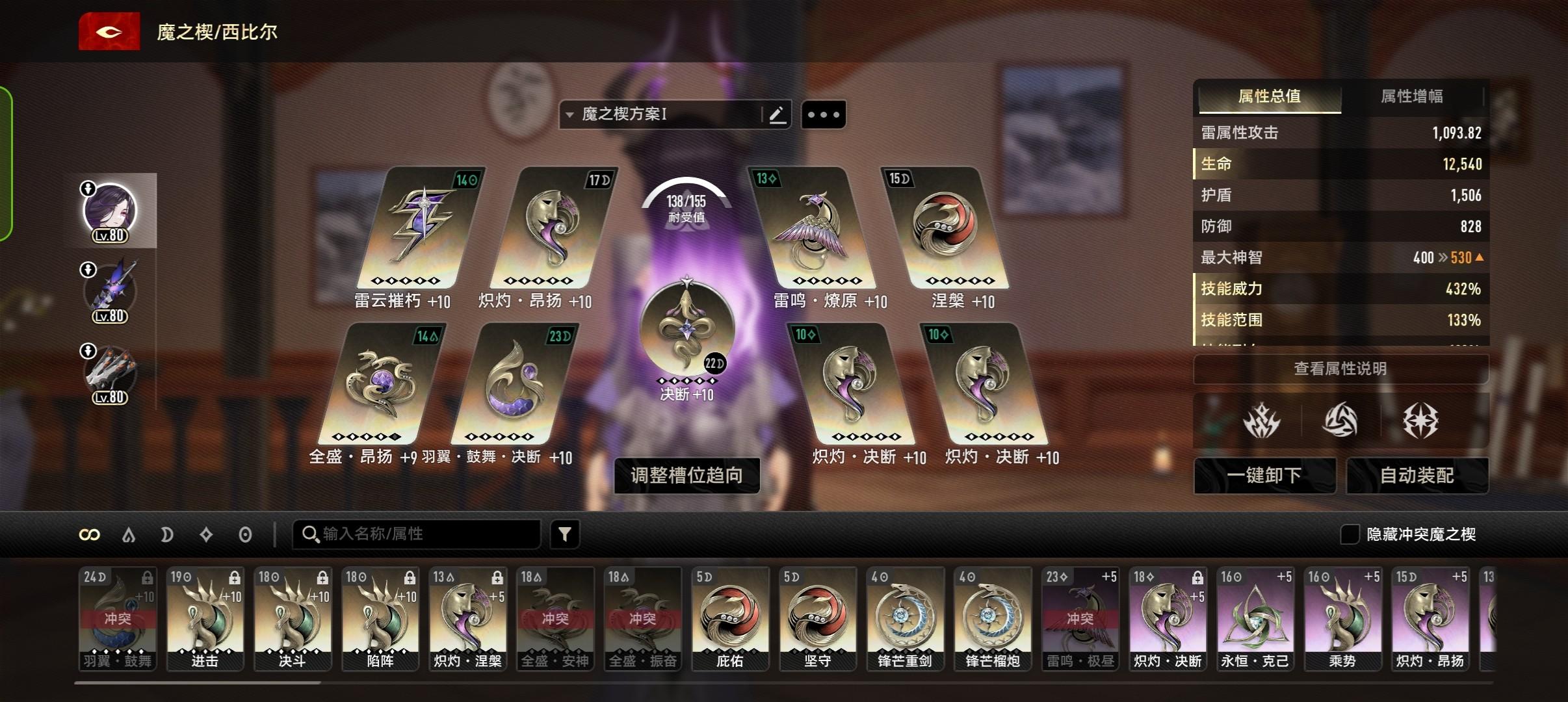 4张图为安装羽翼鼓舞决断和中枢决断前后技能倍率的对比