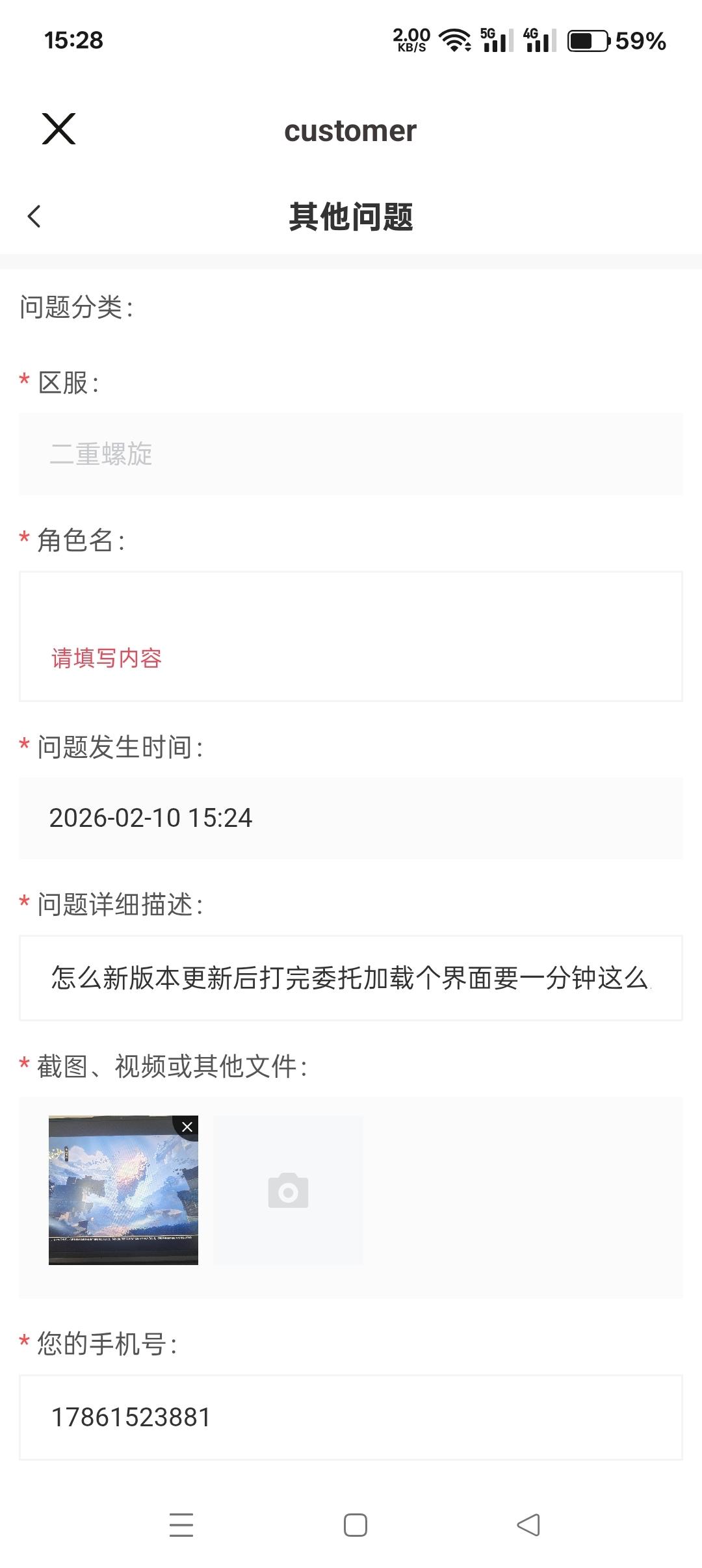 应该是反馈页面bug,我这边角色名是自动填写的,不需要自己写