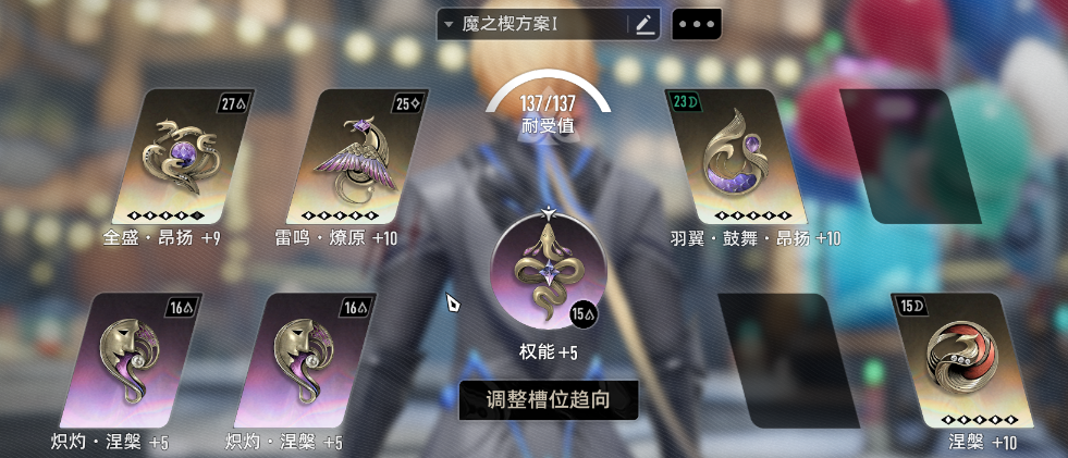 而兰迪需要的属性主要有生命(没有测试防御是否有影响,但是在挂机过程中发现随着波次的提升屏障受到伤害降低的数值不断降低,所以推测防御对屏障有加成,但对于挂机影响不大)所以mod携带如下(不要问为什么没上满mod,问就是没模块了)空位可以继续携带一些生命,或者防御。