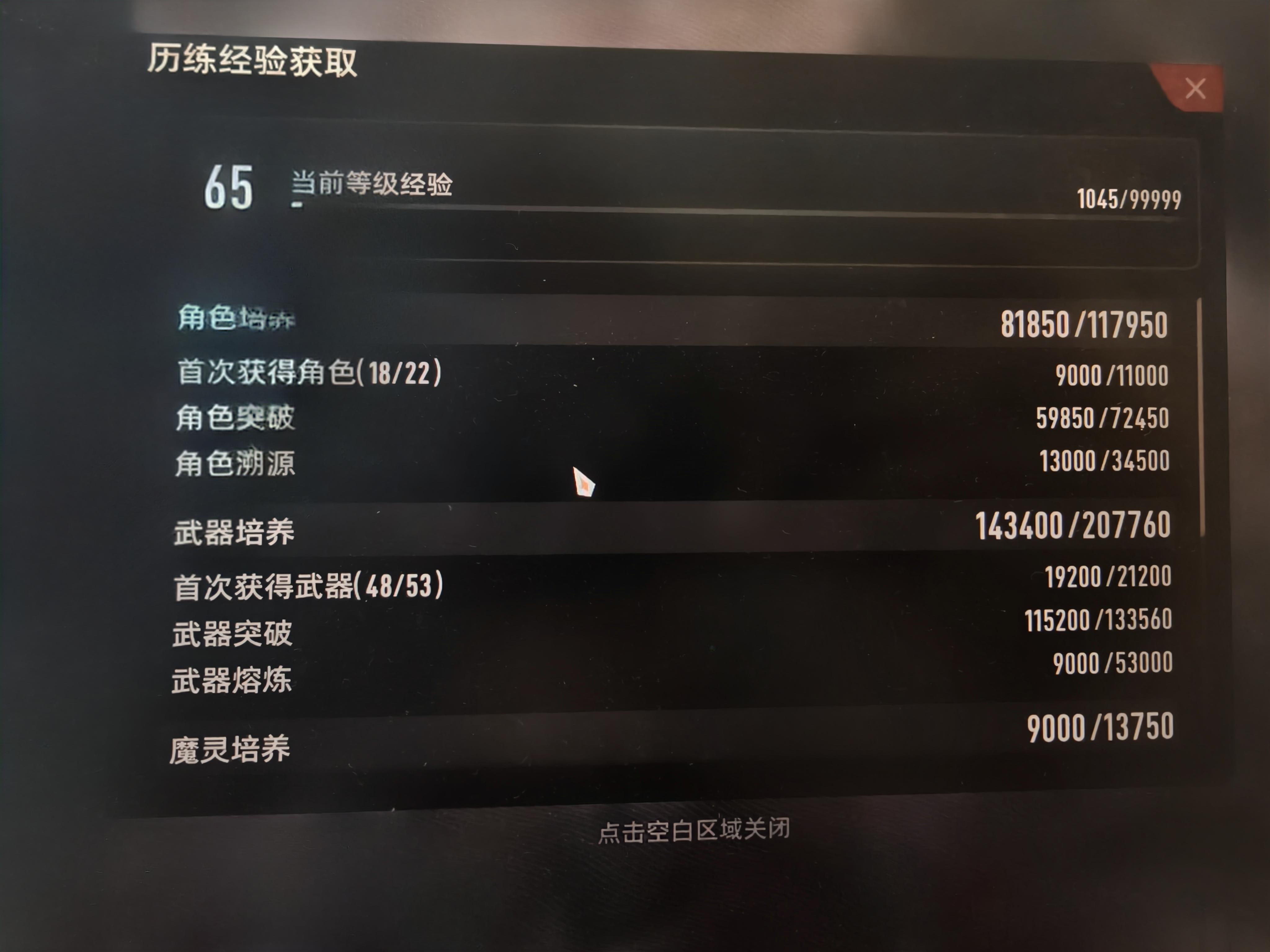 速冲65还是需要刷的,周本就刷了一把电锯,常驻武器全满了,到昨天77天65,常驻还4个角色没满,就溢出5750经验,魔灵差暗水闪兔3只的获取以及光水火暗雷兔的突破经验900,还有火暗14个金mod没做2800。前有养服大佬12.17号51天就65,到下期估计肝帝也可能实现,常驻每次更新1角色2武器就能少需求半个月左右的日常经验。