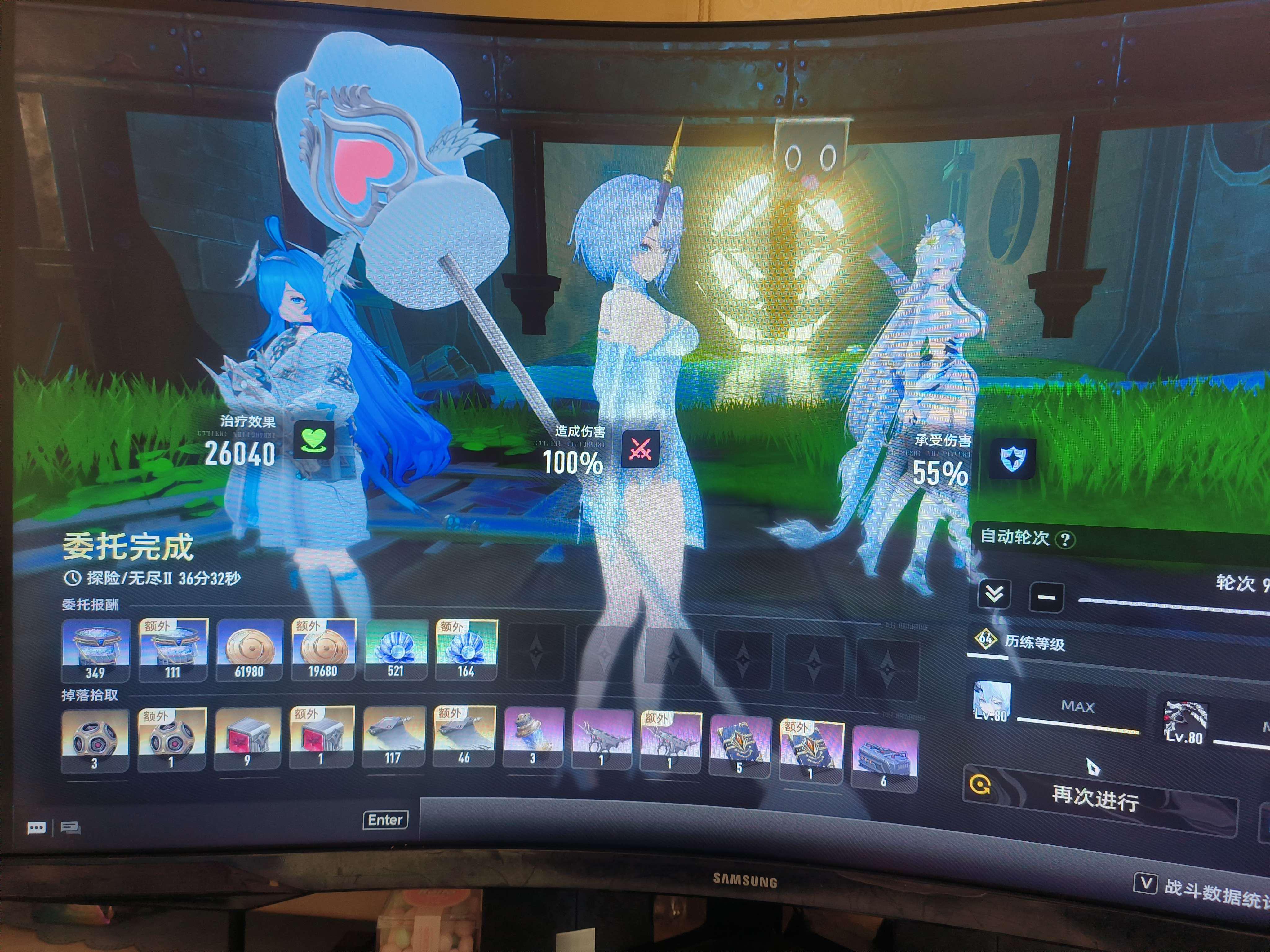 除了中枢都满了,两个助战配置有点拉.. 但是这36分钟我是真滴满意!什么时候能修复莫名其妙的卡怪就好了现在开始冲65级。存了1万密函嗖嗖的消耗..说实话,感觉因为玩的完,错过了好多人物和武器升级好难扶疏版本开始玩的。