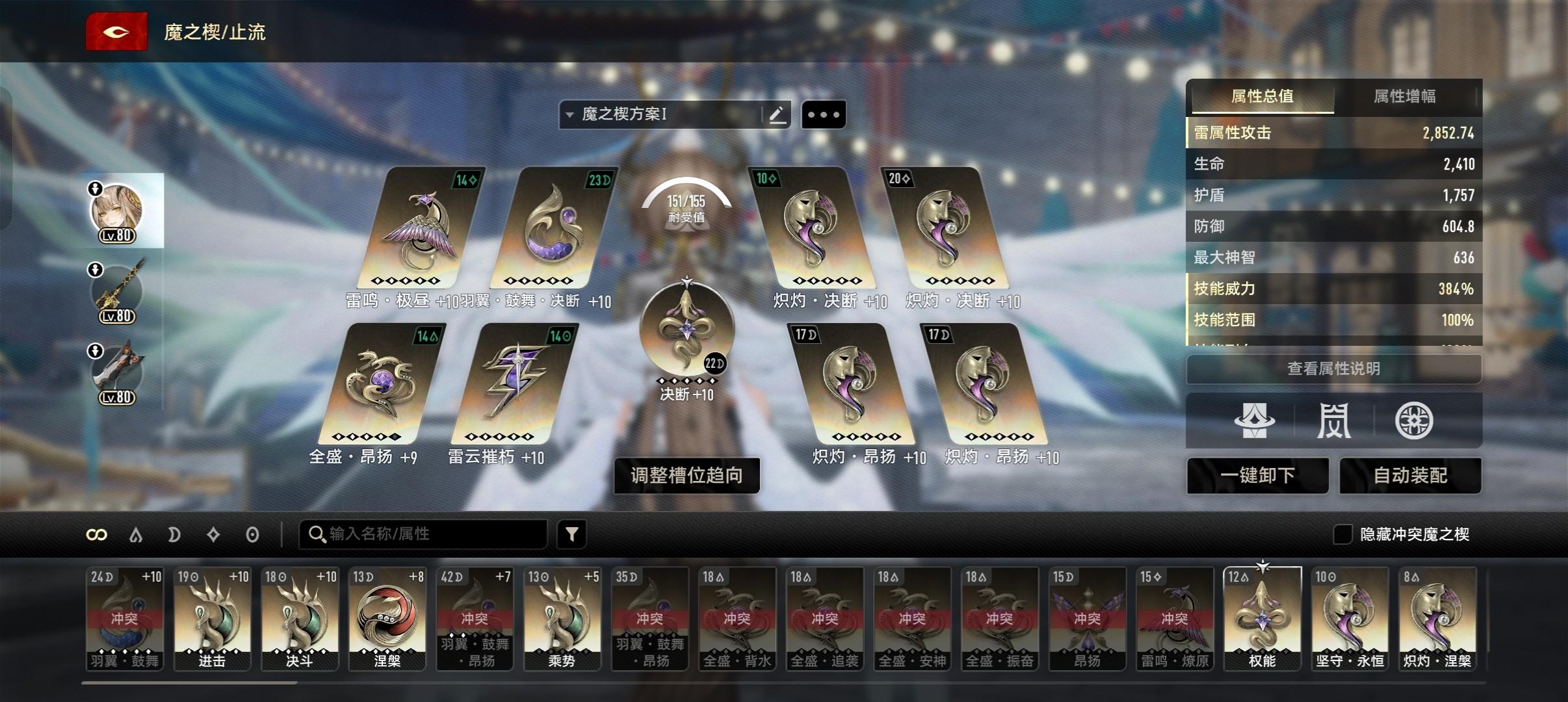 3昂扬1决断,不然中枢吃不到加成