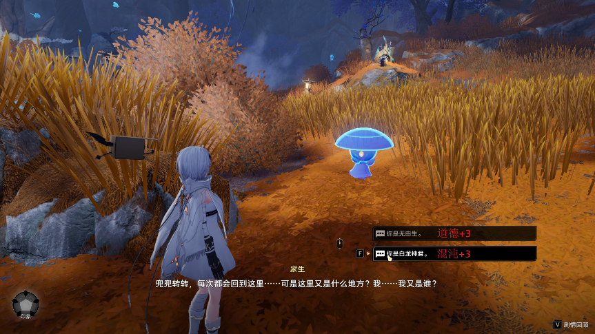 在幽冥涧我所处的这个位置,有一只头上没有对话提示的无由生(家生),也属于印象检测对话。