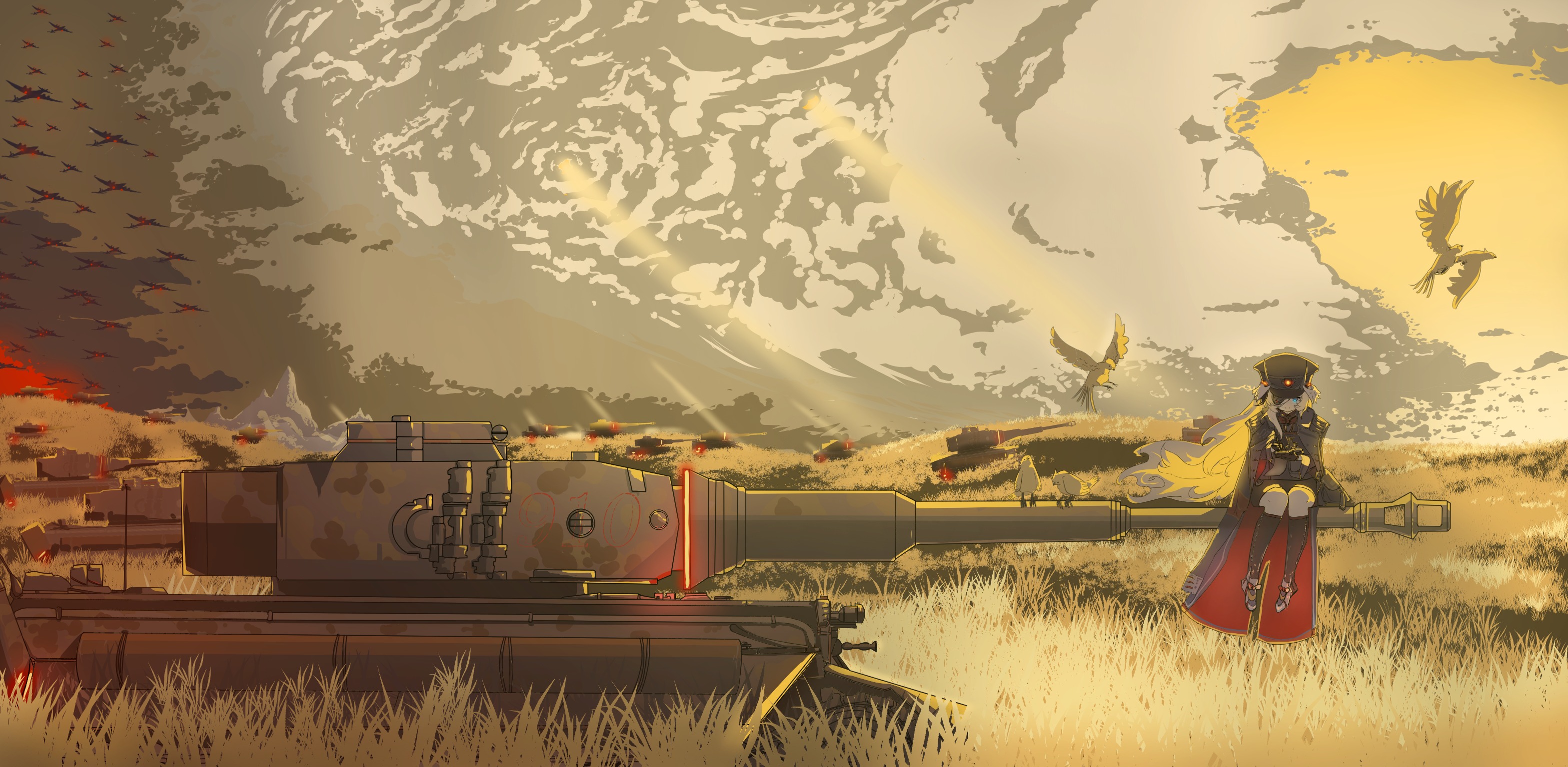 我的世界,不再是那间安静的房间,不再有入睡前轻柔的摇篮曲,只有灰色的天空,黑色的子弹与猩红的血。初入前线时,所有士兵都带着戏谑的鄙夷,说战争对一个女孩来说太过残忍,更何况我是个低贱的卡戎,战争对一个女孩来说太过残酷,更何况是一个卡戎。然而他们那时从不会想到,我的才能不只是召唤童话里的动物朋友,那些被画在纸张上的兵器设计稿,只要经过我的手指触碰,不论多么精细复杂,都能降临现世。这片钢铁洪流,经由吾手,席卷西线。看到那些被碾碎的尸体,我会恍然失神,在崩溃边缘,是您的话,把我从这片人间地狱里,一次又一次拉了回来。我必须活下去,哪怕背负杀孽。