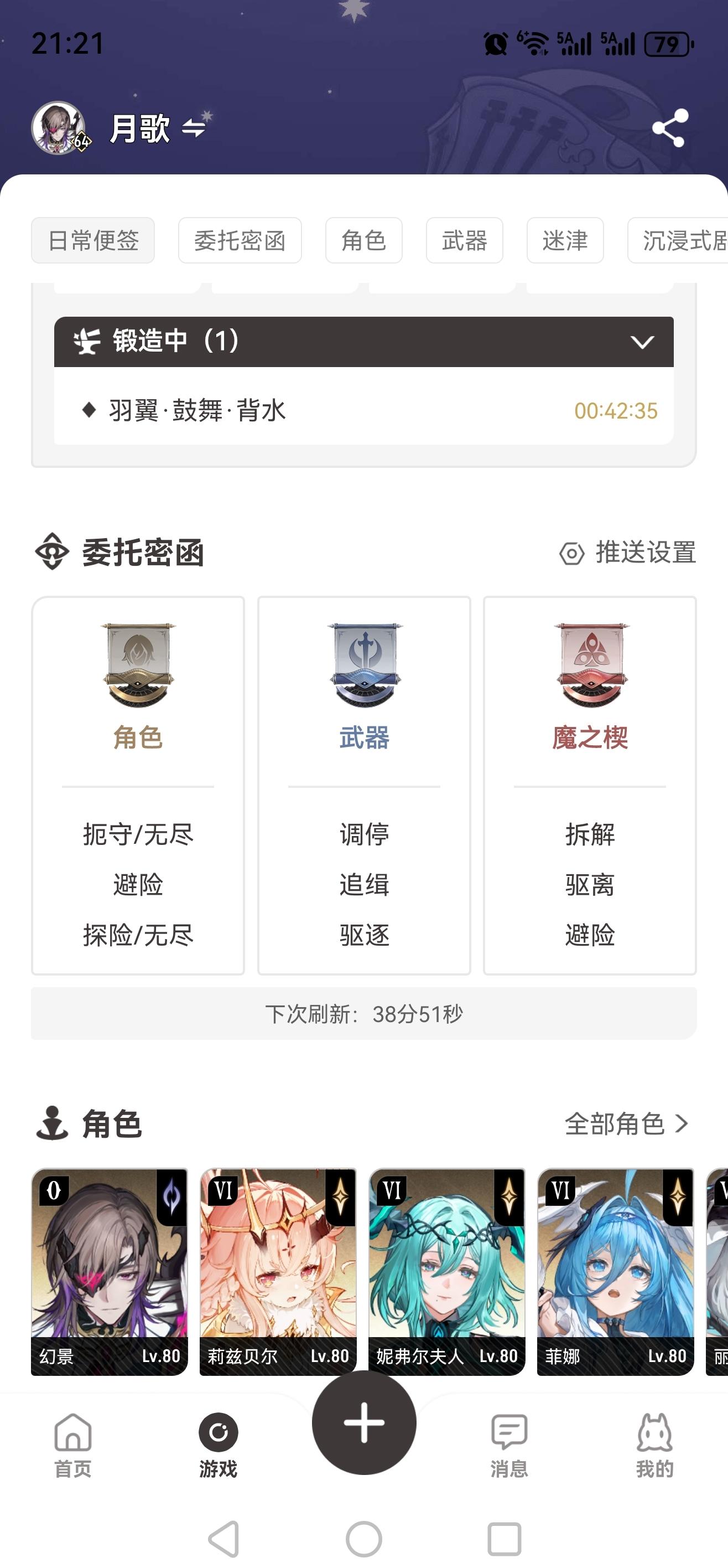 APP显示锻造中的“羽翼鼓舞背水”,如下图: