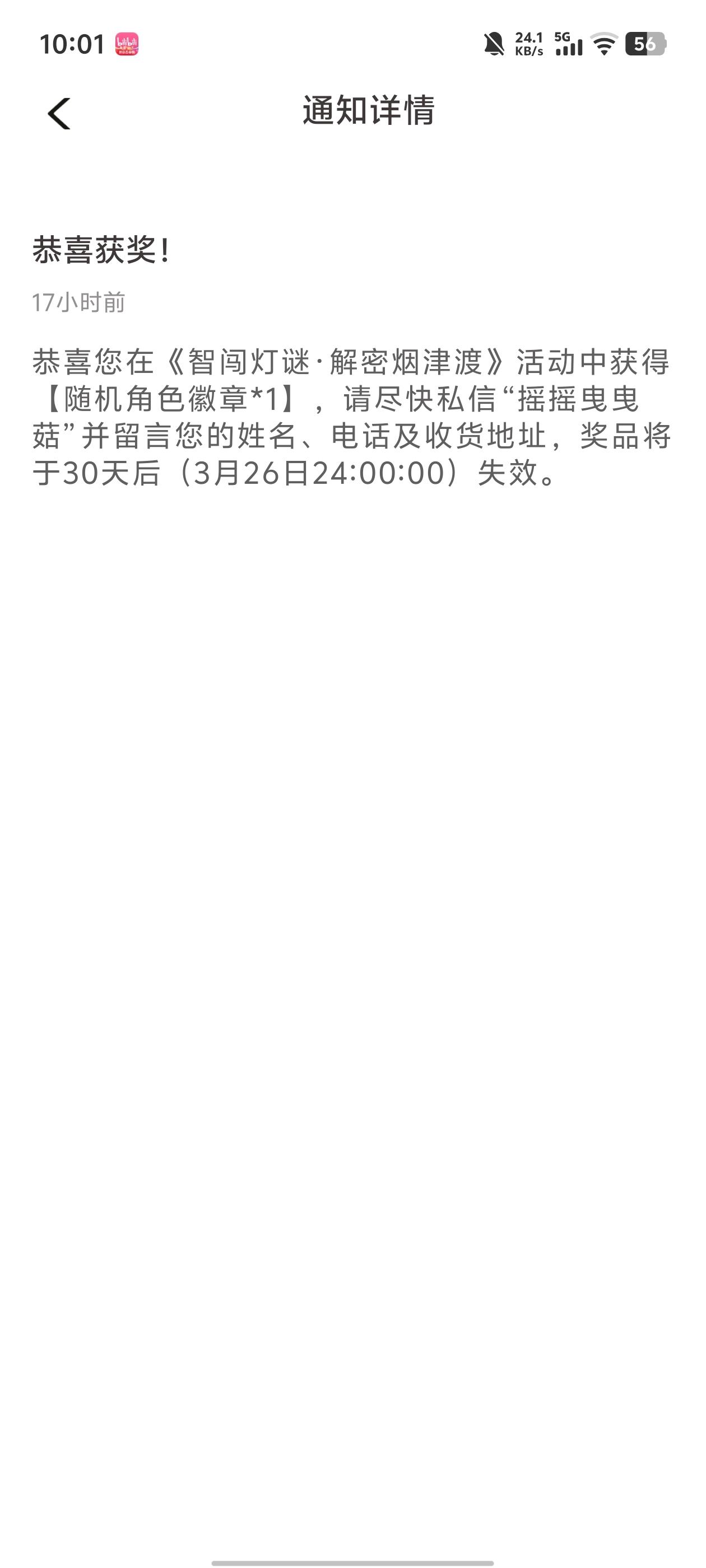 第一次中奖,感谢皎皎