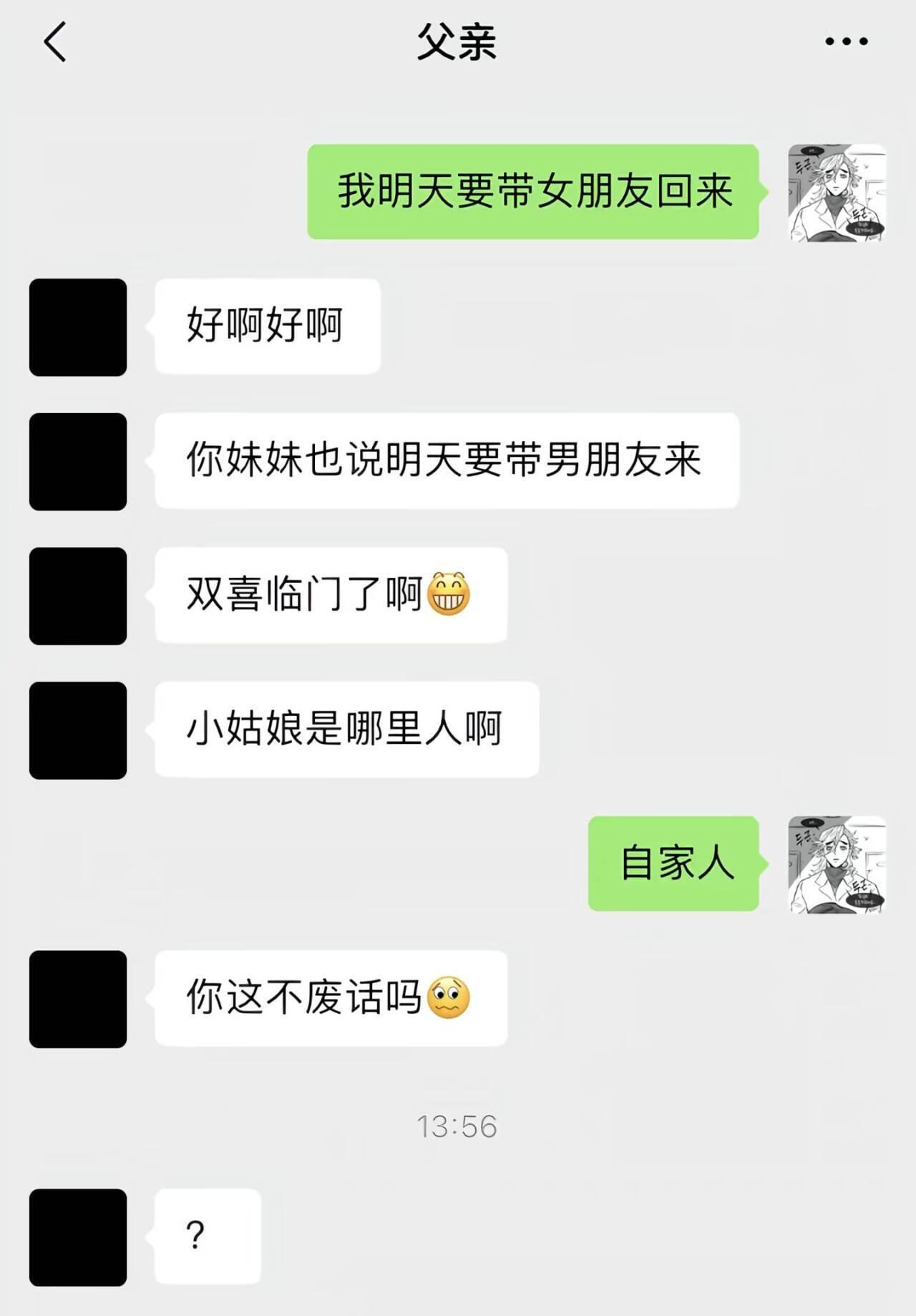 如果是朋友的话,正常情况下不会说是自家人