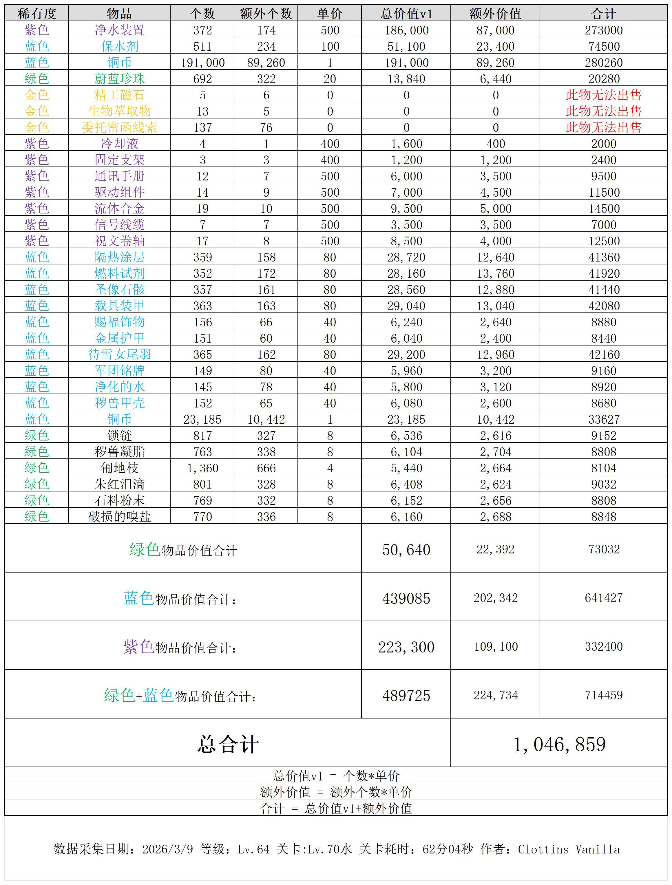 总价值:约1,046,859