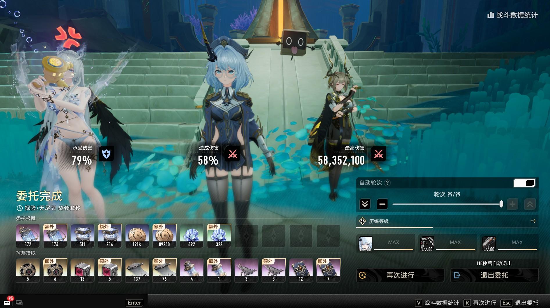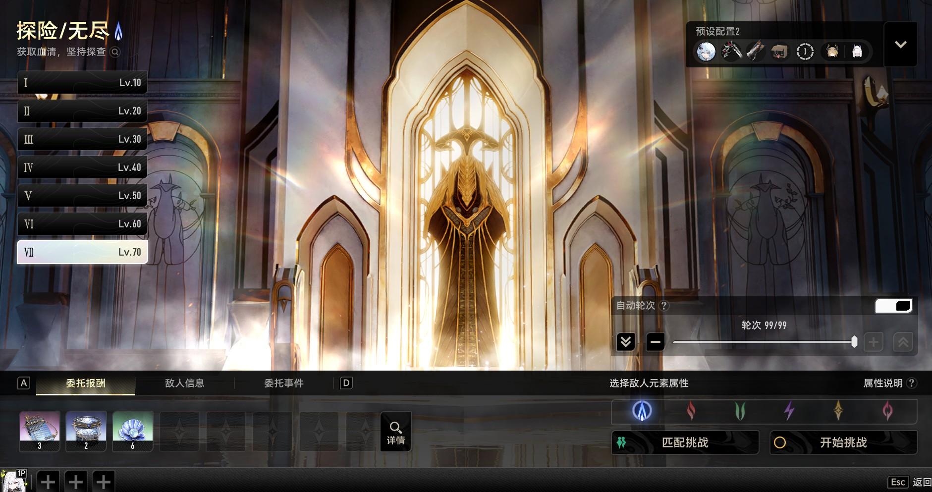 副本:探险/无尽 Lv.70 水属性 99轮