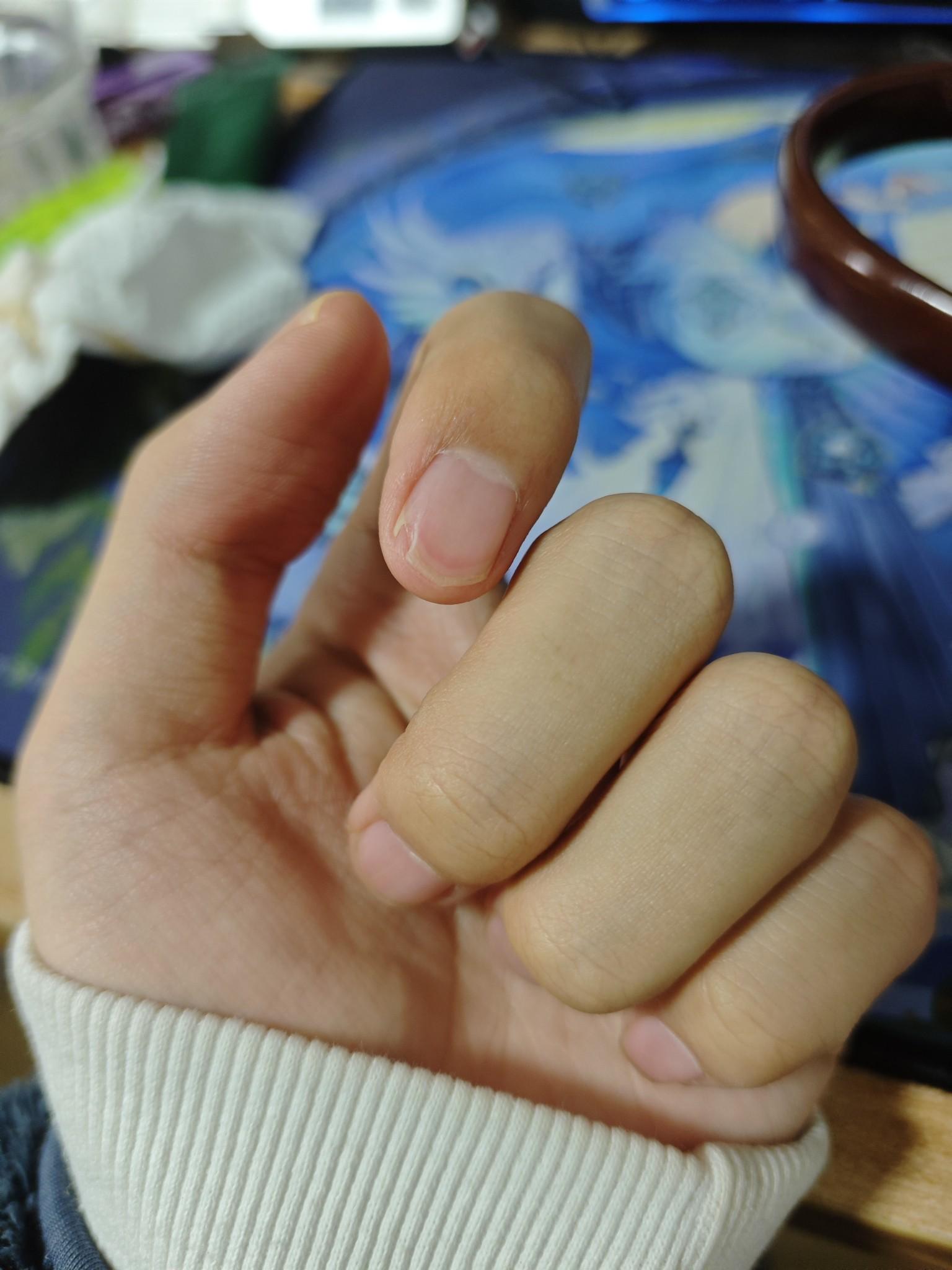 指甲看着就疼,摸摸。来吃