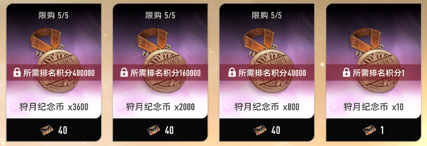 这次的活动新增了一共四个档位的门票兑换途径,可以直接将门票兑换成纪念币