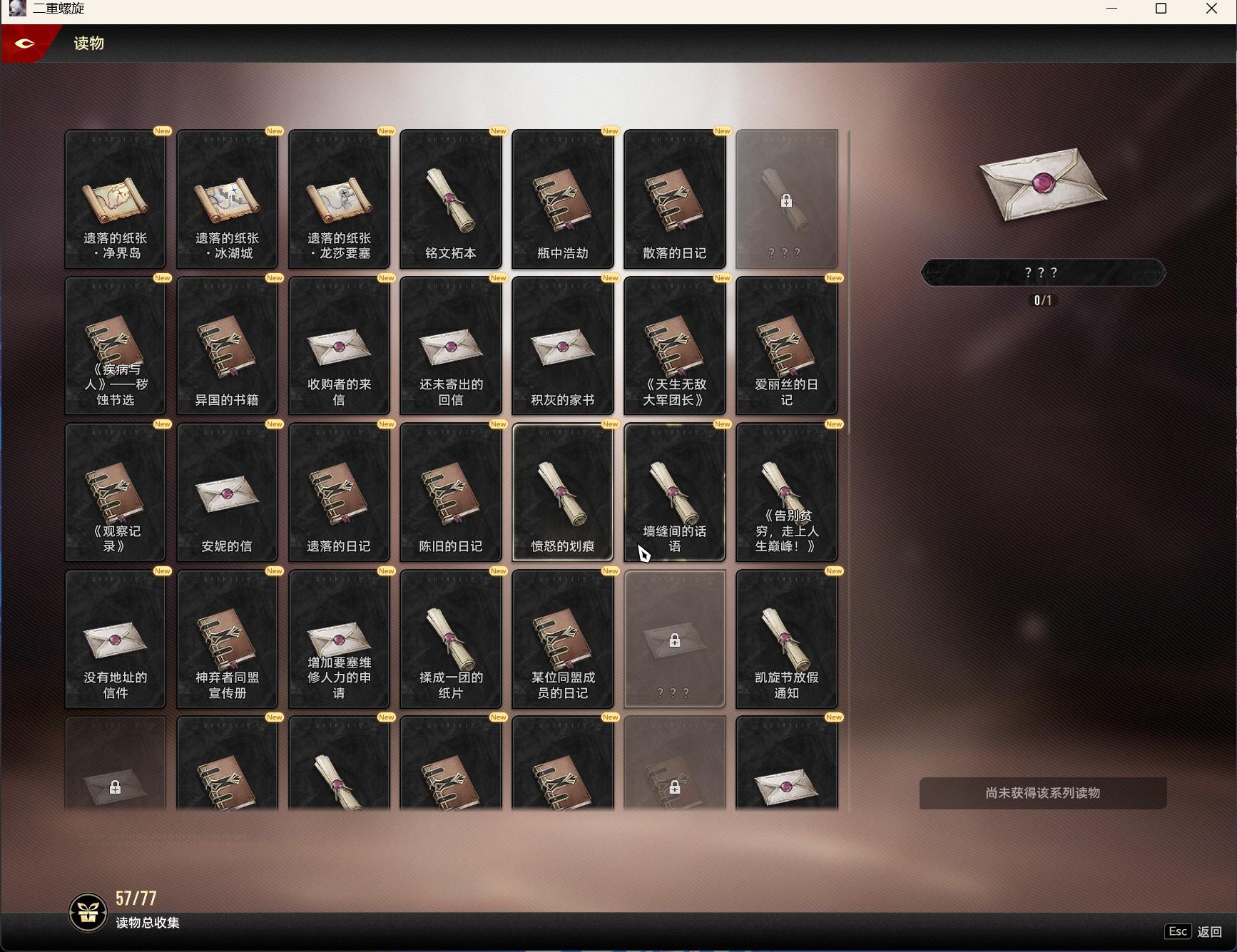第一个我也缺后面的分别是《改进排水机关的申请》《对龙莎要塞的行动指示》《治疗师的日记》