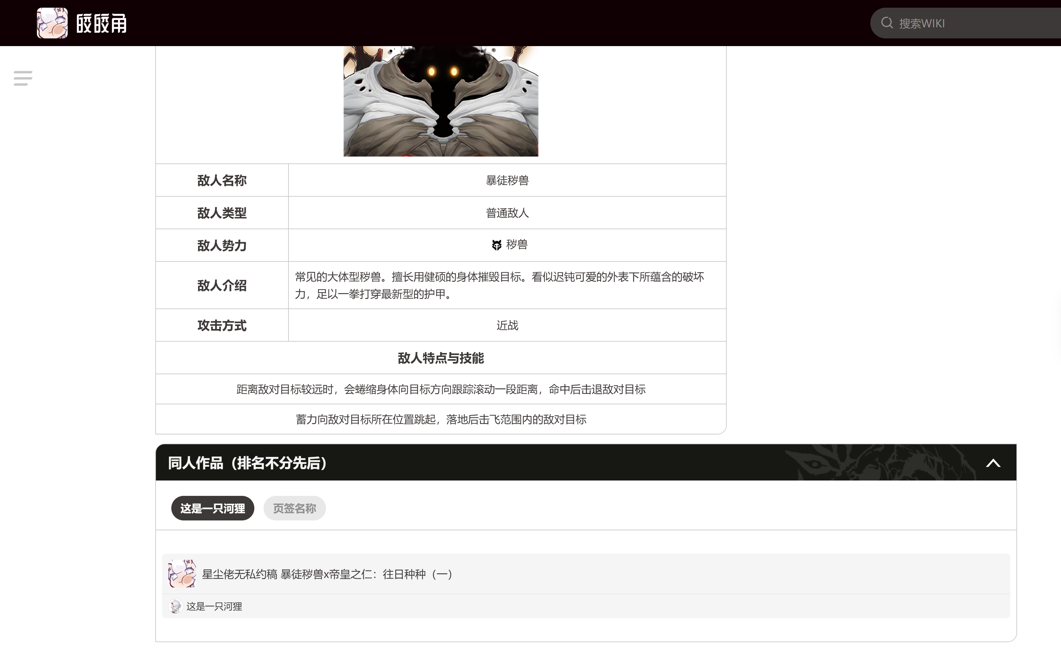 wiki新增二创推荐,在对应角色的页面下方可以就看到该角色相关二创哦!