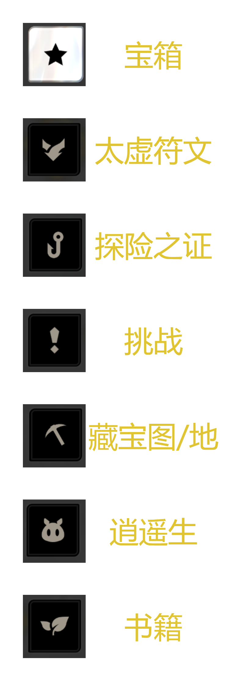 然后这是各个标记代表的含义(注意:太虚符文和书籍标志记得看清楚)
