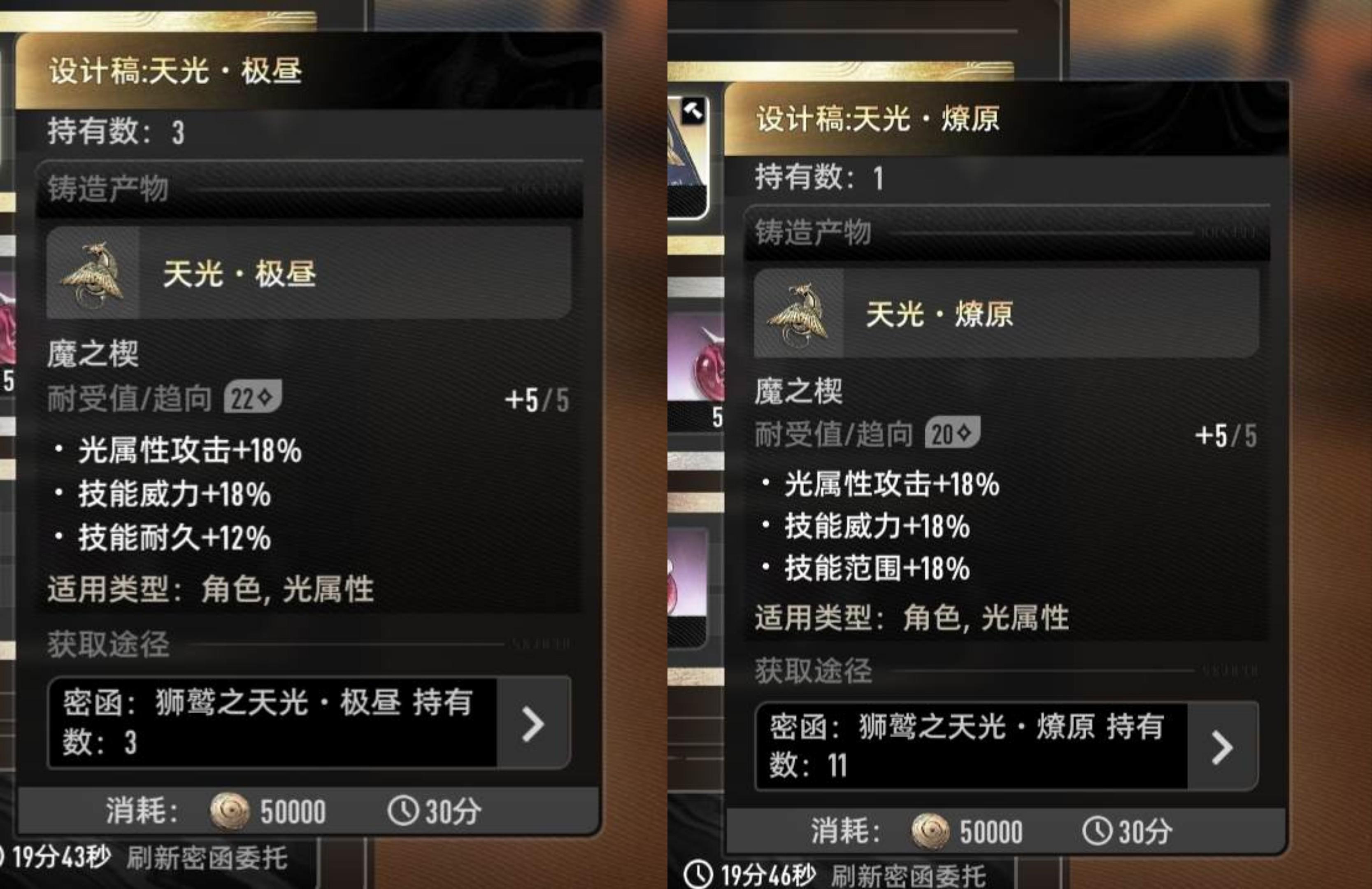 首先说一下狮鹫系列的“天光燎原”和“天光极昼”。