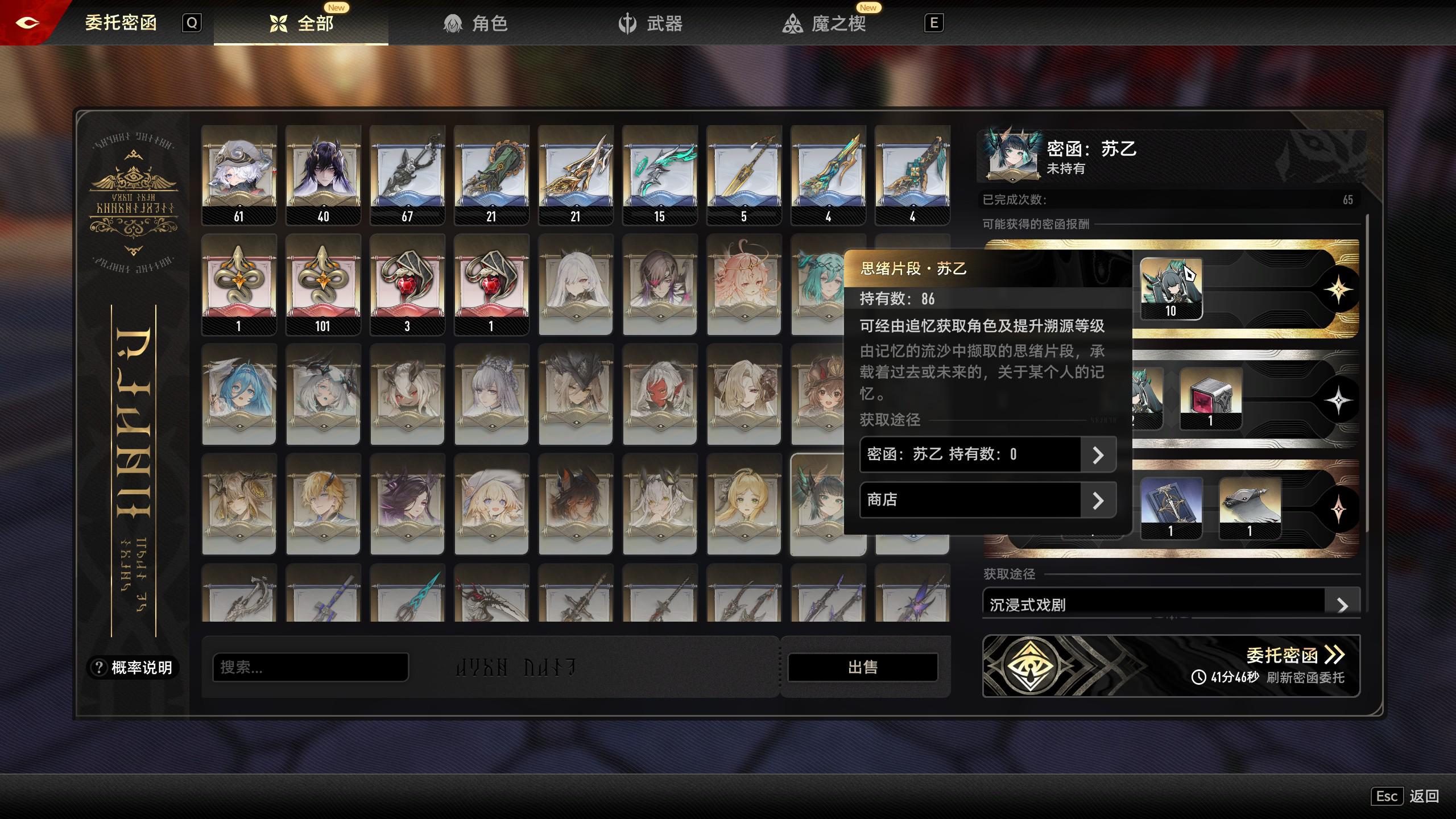 虽然但是,除了解密和苏乙,其他真没啥好说的,棱镜50概率本来就占金色1/12,抽不到50正常,保底更正常,这游戏金色概率太低了,65碎片一溯确实脸黑,但也没办法,期望在那,后期能白嫖也不怕
