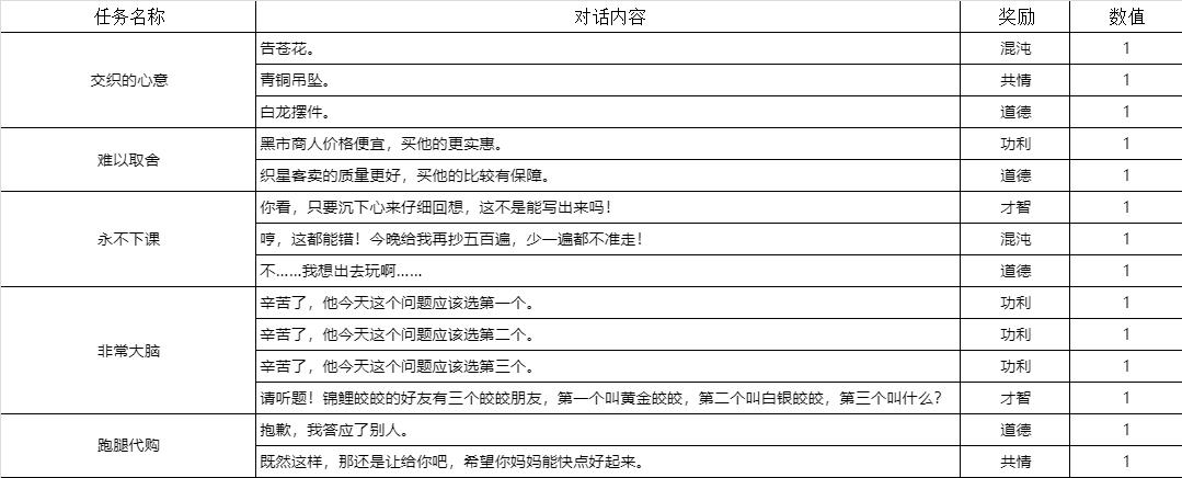 主线/特殊支线对话奖励一览